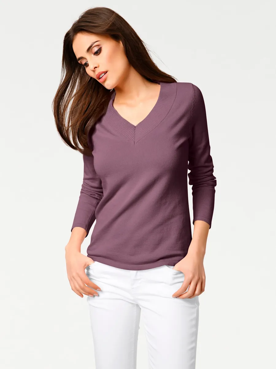 Вязаный свитер Heine "V-пуловер", лиловый