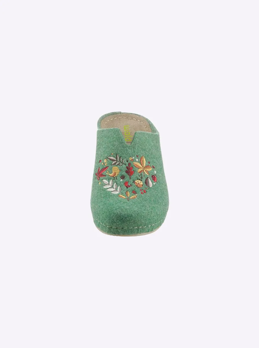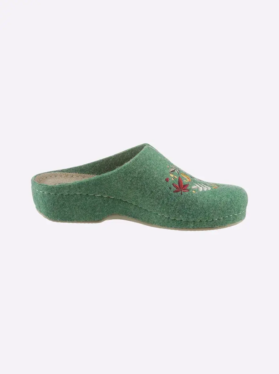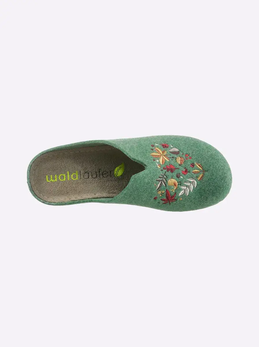 Waldläufer – популярный бренд удобной обуви представляет новые, удивительно удобные тапочки. Изготовлен из высококачественного шерстяного фетра с декоративной вышивкой. Кожаная стелька. Анти-шок для мягкого внешнего вида. Стелька с кожаным покрытием и эффектом памяти, которая оптимально адаптируется. Легкая, гибкая и нескользящая подошва с каблуком высотой около 35 мм. Ширина Г.