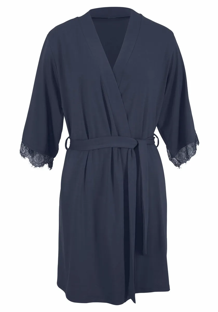 Кимоно LASCANA, с кружевом по краю рукава, синий
