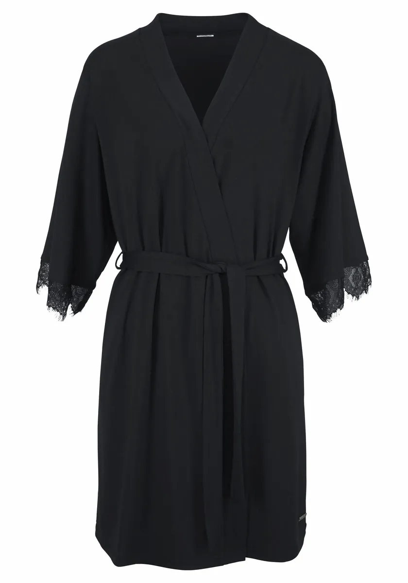 Кимоно LASCANA, с кружевом по краю рукава, черный