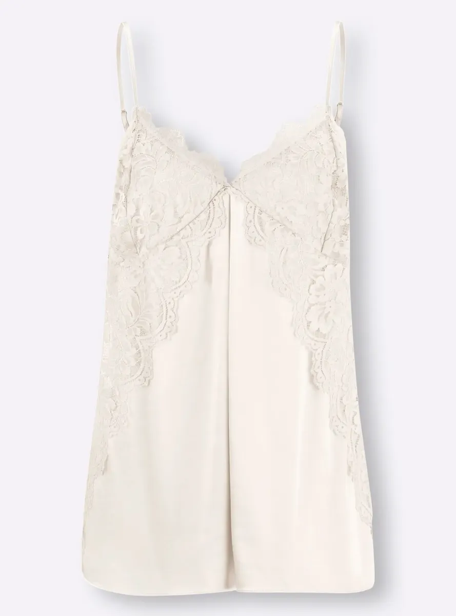 Webtop Универсальное изделие с высоким содержанием шелка. Женственное кружево и элегантный блеск. 47% шелк, 44% вискоза, 9% эластан. Машинная стирка.