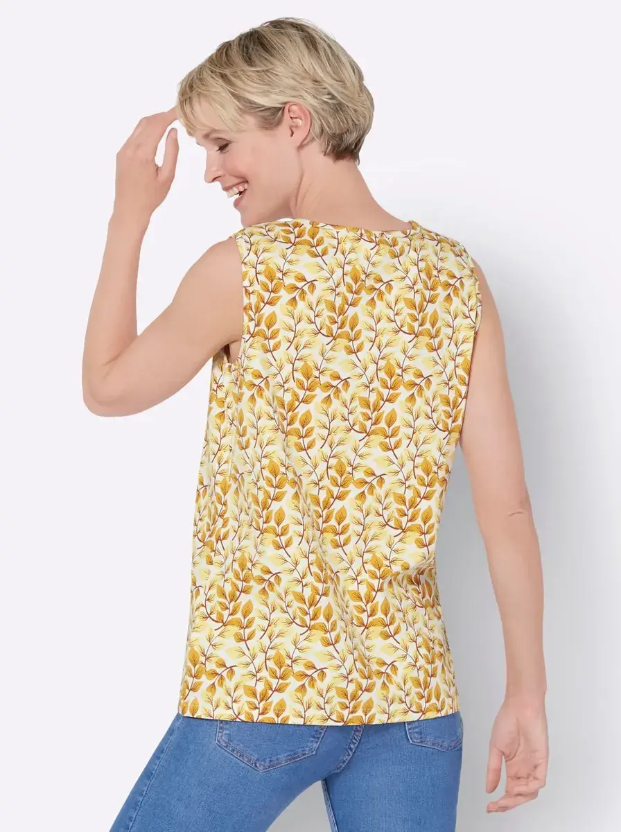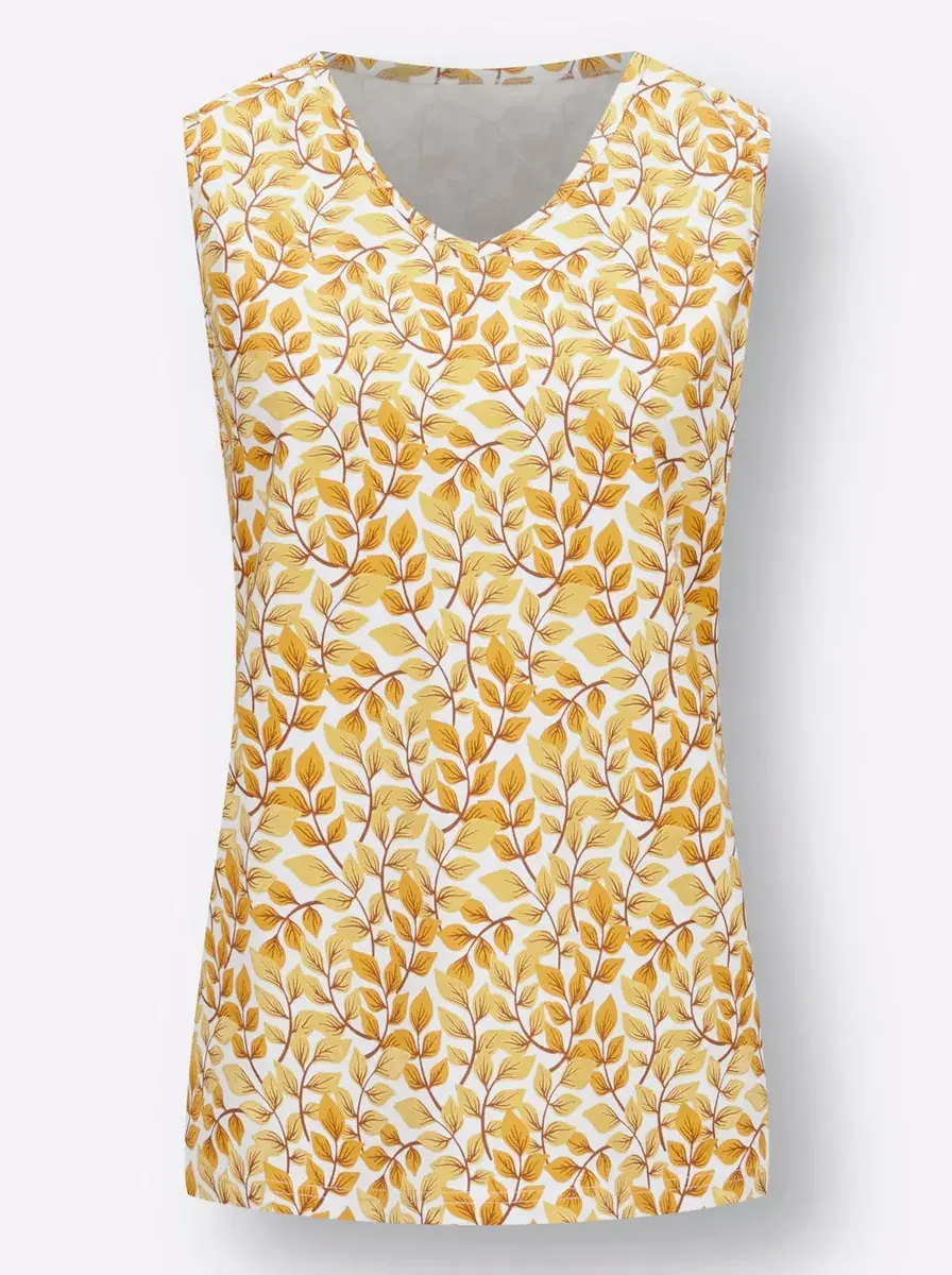 Вдохновленный красотой природы: приятный для кожи топ-рубашка с универсальным узором в виде листьев. Эффектный V-образный вырез. 95% хлопок, 5% эластан. Машинная стирка.