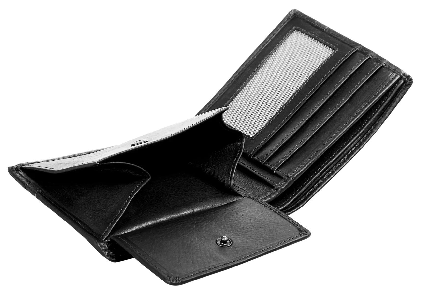 2 кармана для карт, 4 прорезных кармана и 2 кармана для купюр, 1 карман для дисплея и 1 карман для монет.