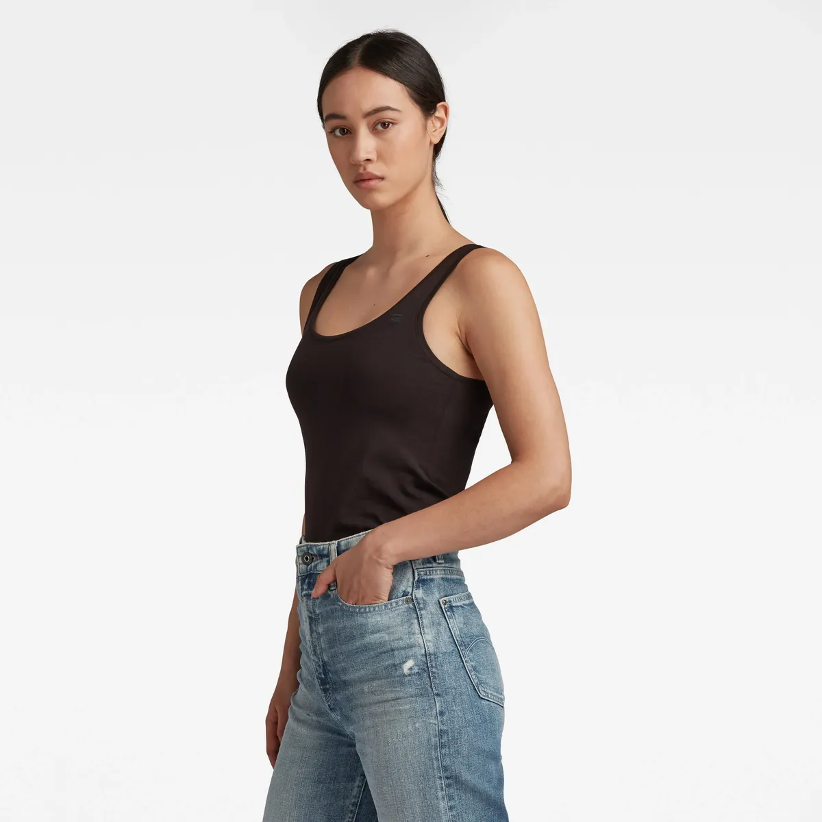 Классическая женская майка от G-Star RAW с вышивкой. С облегающим фигуру кроем. Это позволяет создавать уютные и стильные образы. Эластичный и мягкий трикотаж делает верх комфортным для кожи.