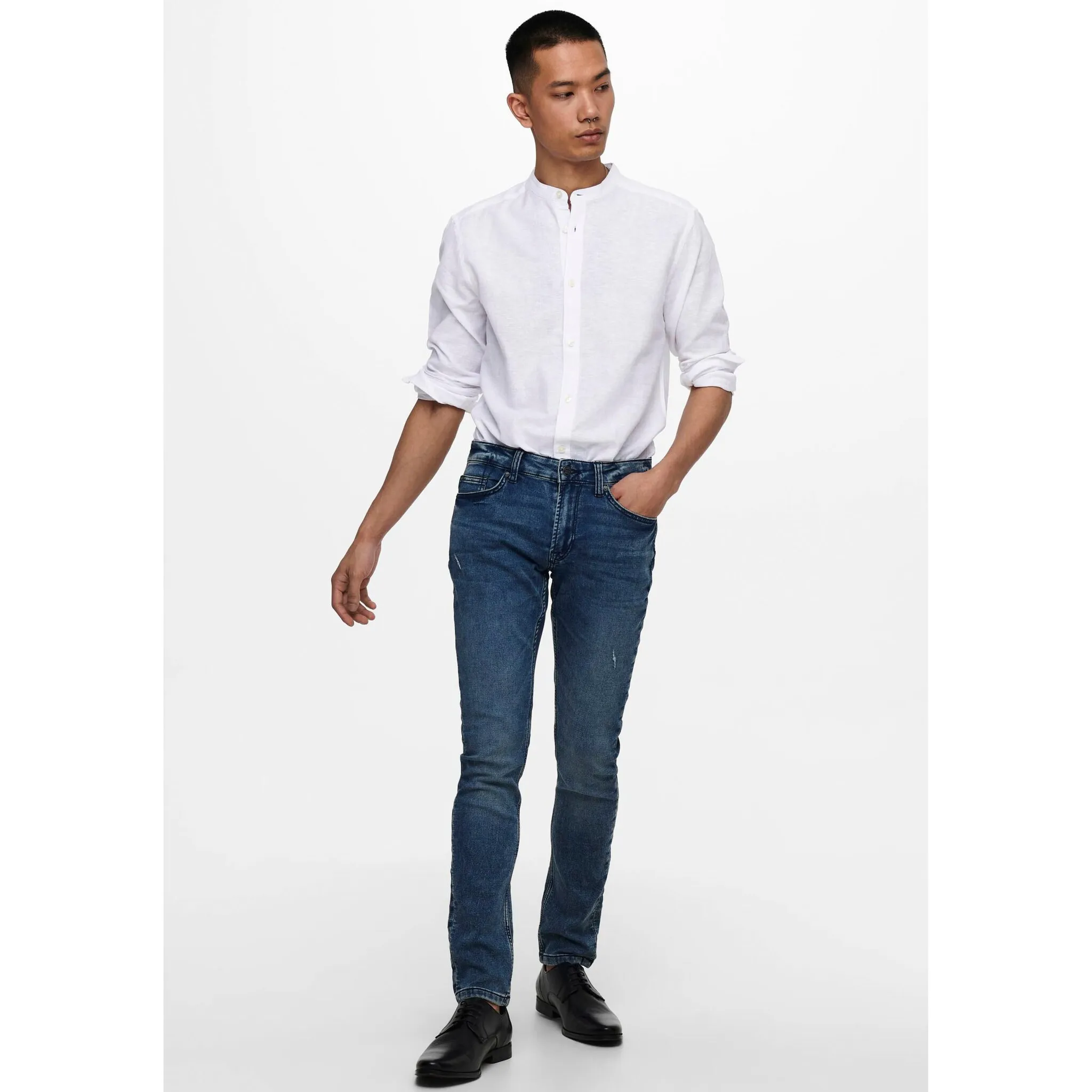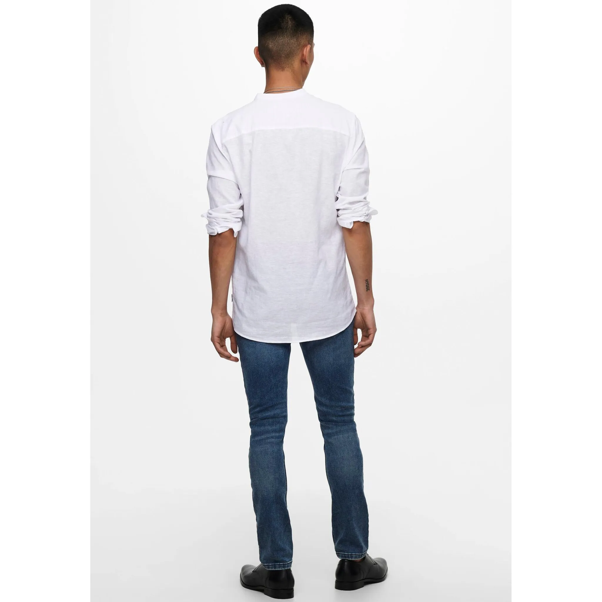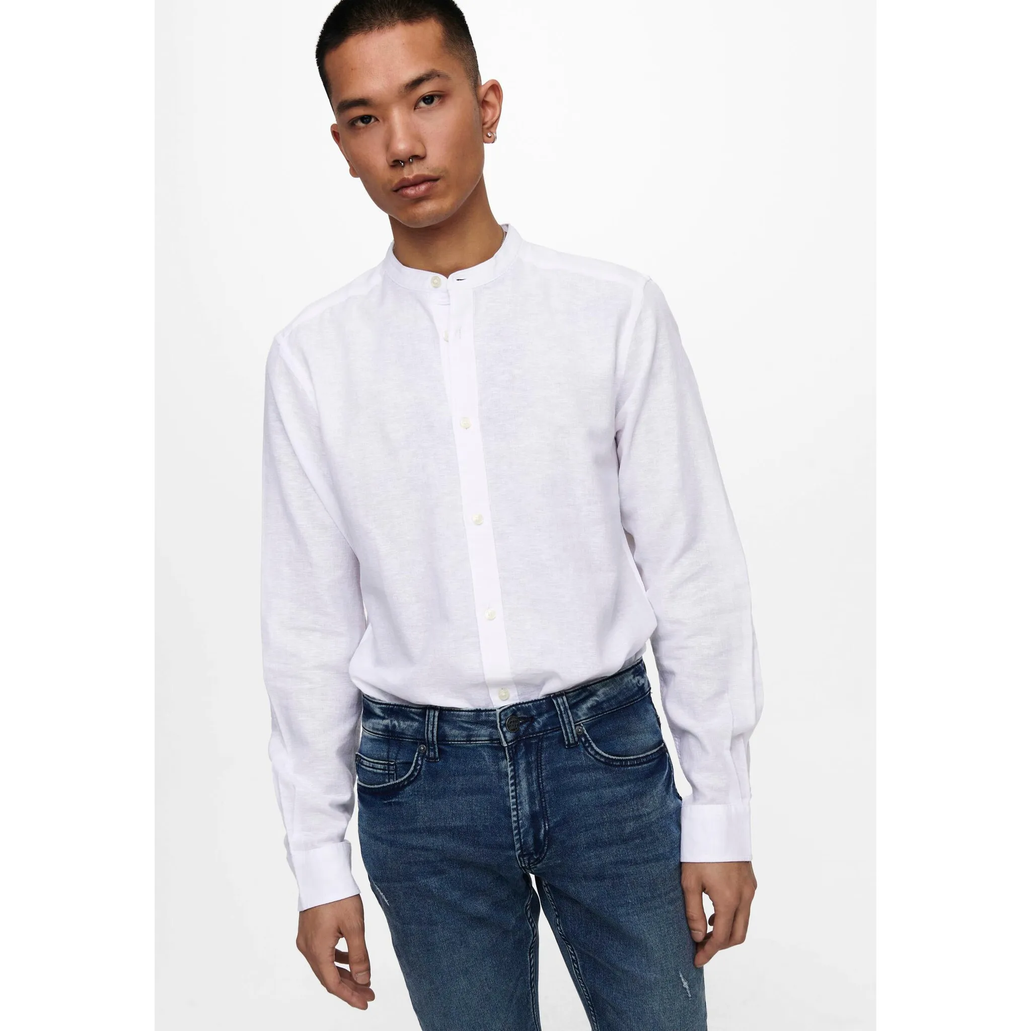 Рубашка с длинными рукавами ONLY & SONS "ONSCAIDEN LS SOLID LINEN MAO SHIRT NOOS", белый