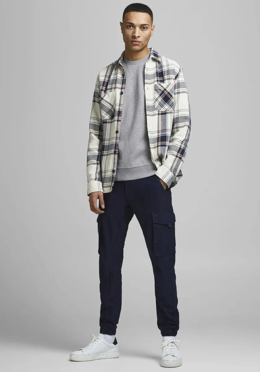 Актуальная мужская толстовка от Jack & Jones. С обычным широким вырезом. Рукава длинные. Верх удобен в ношении благодаря мягкому хлопку.