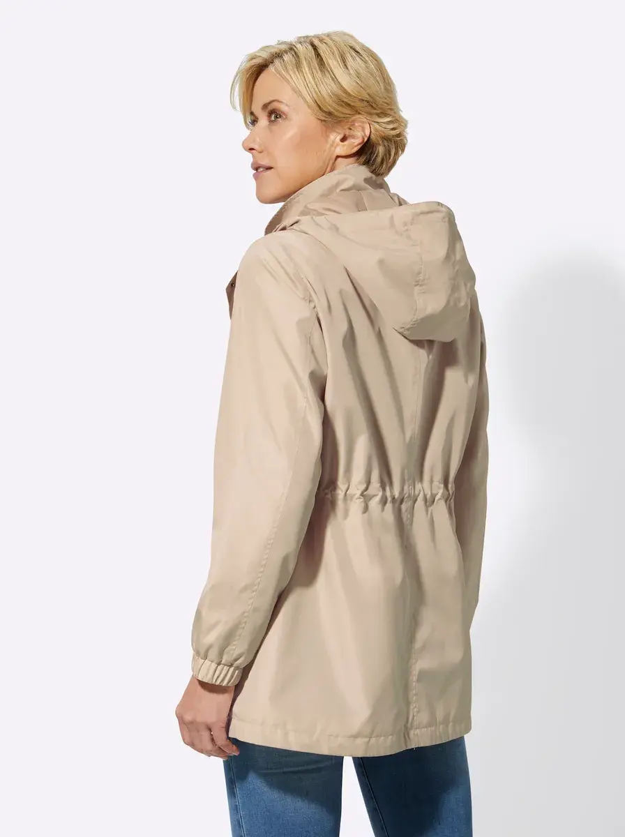 Ветро- и водоотталкивающая куртка для переходного периода, легкая, летняя. Вы можете варьировать ширину капюшона с помощью кулиски и застегивать его спереди на 2 кнопки для защиты от ветра. Очень практично: его можно полностью снять с помощью молнии! В зависимости от погоды куртку можно носить с капюшоном или без него. Вы также можете плавно регулировать размер талии с помощью кулиски, чтобы куртка идеально сидела на любом силуэте. Застегивается спереди на молнию во всю длину и планку на кнопках. С 2 передними карманами и внутренним карманом на кнопке на подкладке. Длинные рукава заканчиваются мягкими эластичными лентами. 100% полиэстер. Подкладка: 100% полиэстер. Машинная стирка.