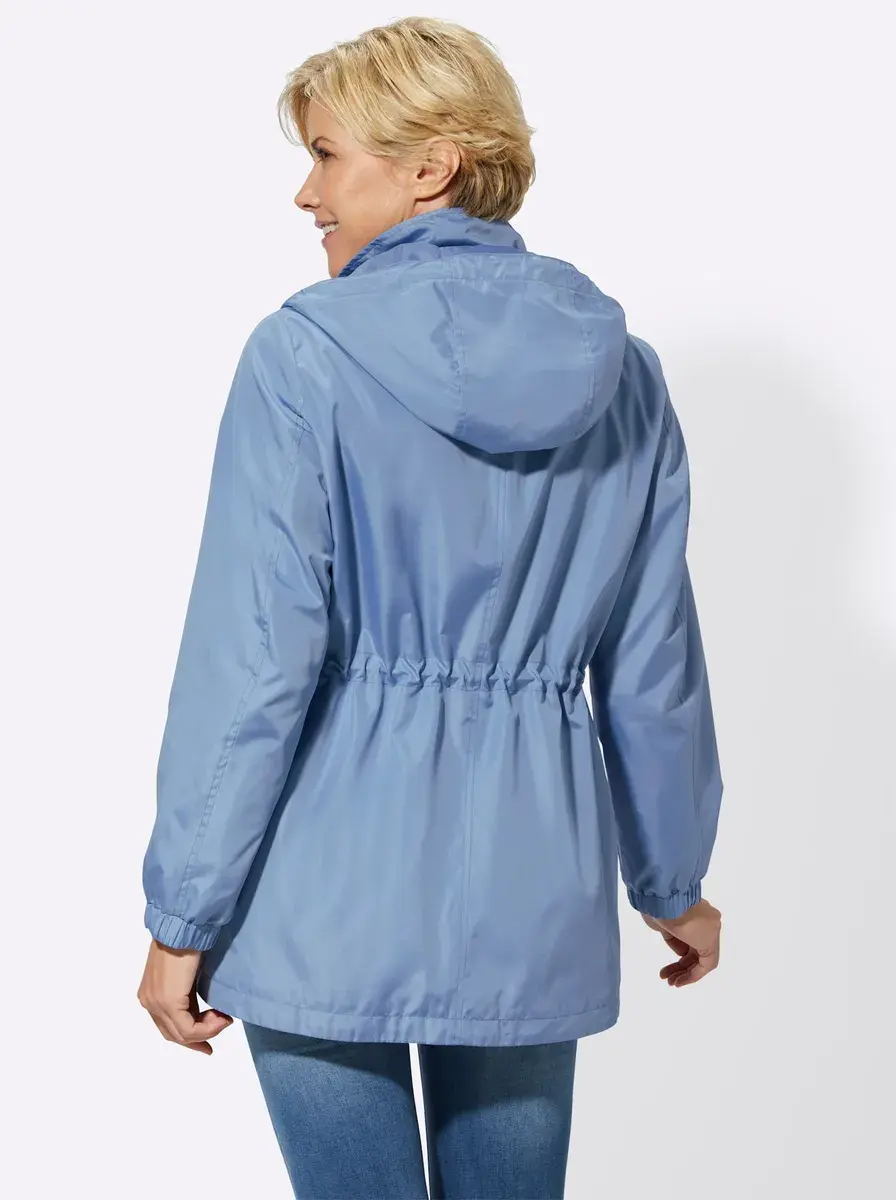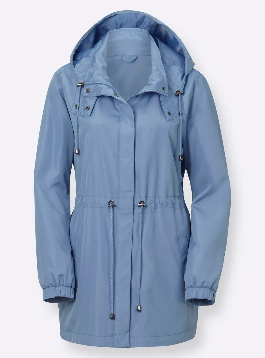 Ветро- и водоотталкивающая куртка для переходного периода, легкая, летняя. Вы можете варьировать ширину капюшона с помощью кулиски и застегивать его спереди на 2 кнопки для защиты от ветра. Очень практично: его можно полностью снять с помощью молнии! В зависимости от погоды куртку можно носить с капюшоном или без него. Вы также можете плавно регулировать размер талии с помощью кулиски, чтобы куртка идеально сидела на любом силуэте. Застегивается спереди на молнию во всю длину и планку на кнопках. С 2 передними карманами и внутренним карманом на кнопке на подкладке. Длинные рукава заканчиваются мягкими эластичными лентами. 100% полиэстер. Подкладка: 100% полиэстер. Машинная стирка.