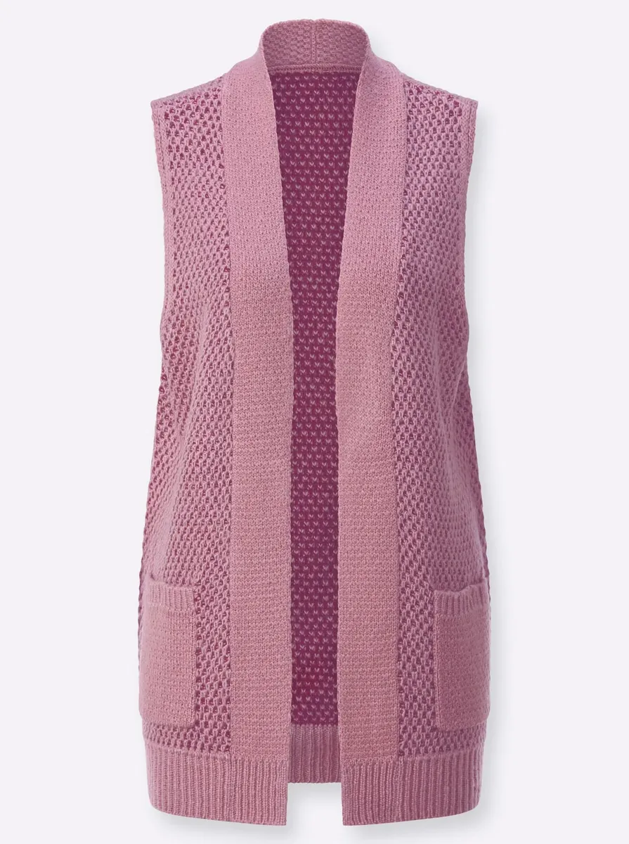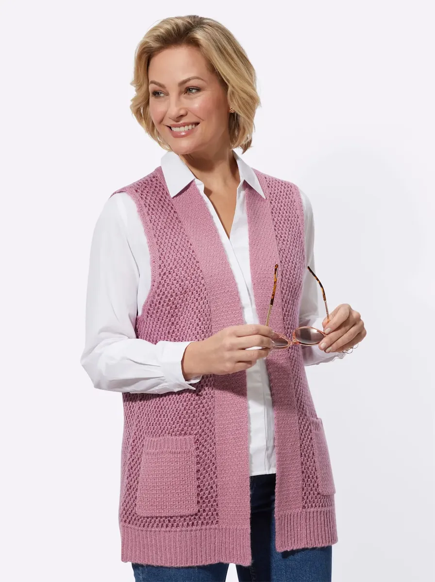 Его можно сочетать удивительным и универсальным способом! Вязаный жилет из эффектной смеси пряжи. С любовью выполнено вязаным узором. С тянущимся V-образным вырезом. 2 накладных кармана. Ребристая отделка. Тщательно связанный спицами по фигуре. 100% полиакрил. Машинная стирка.