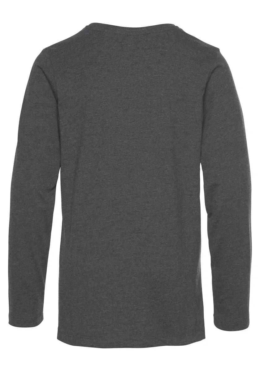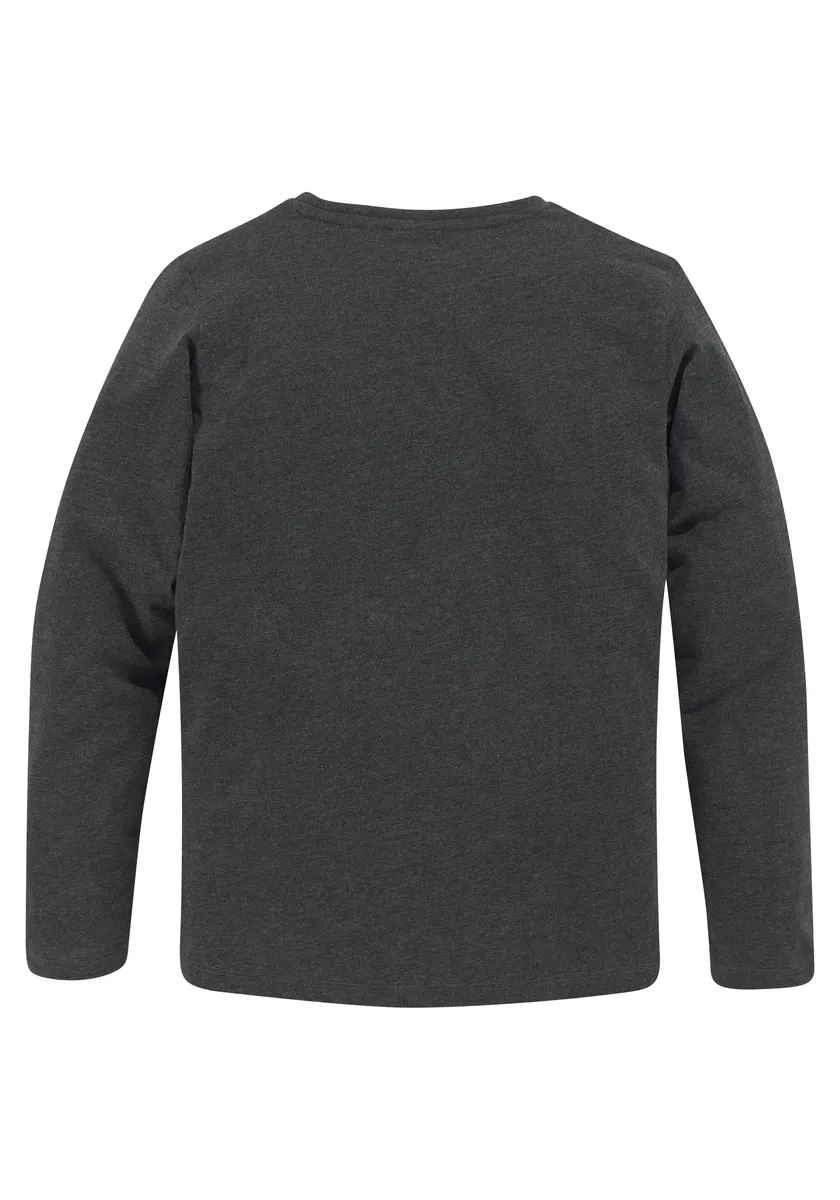 Актуальная рубашка с длинными рукавами от бренда KIDSWORLD. С обычным широким вырезом. Имеет повседневный принт. Топ из эластичного трикотажа чрезвычайно удобен в ношении.