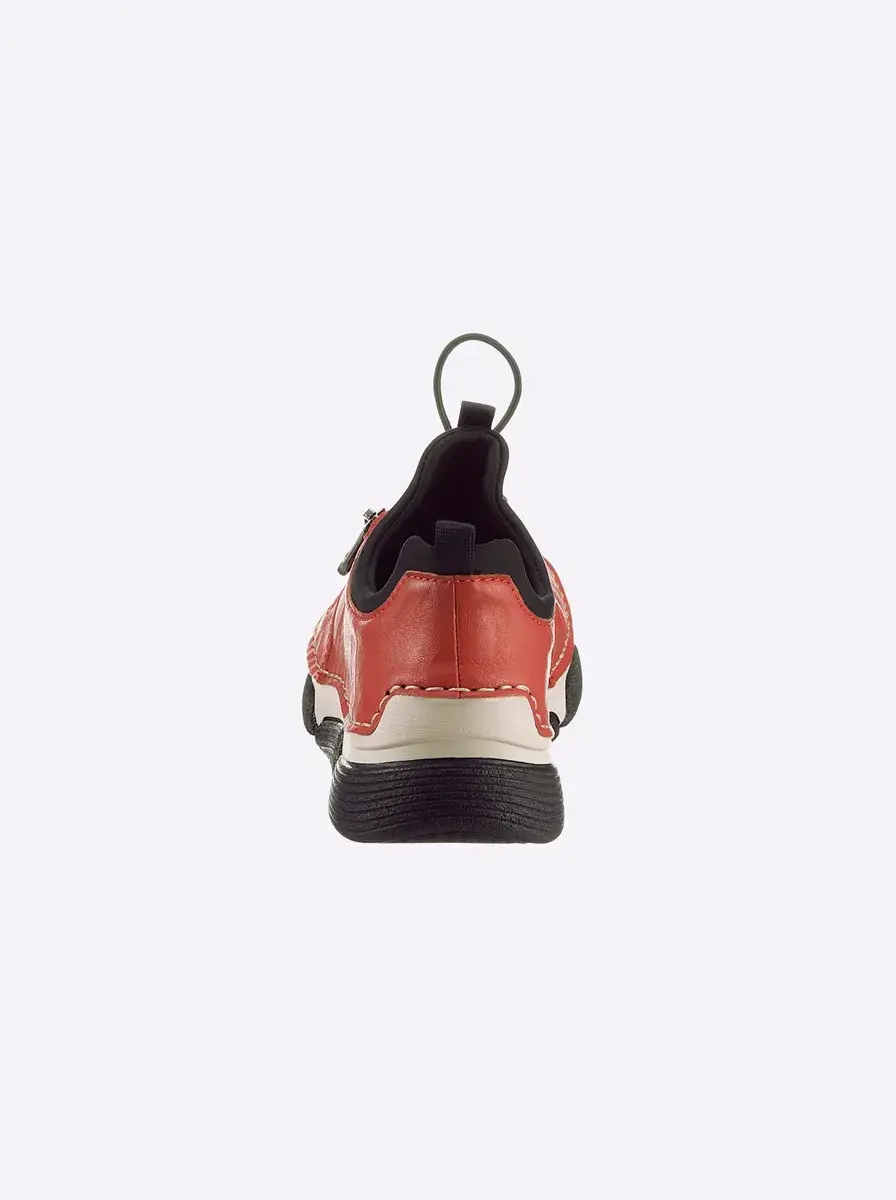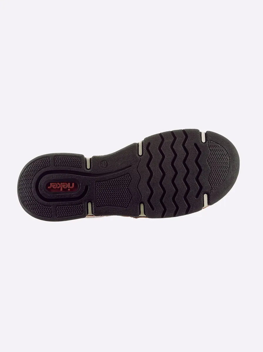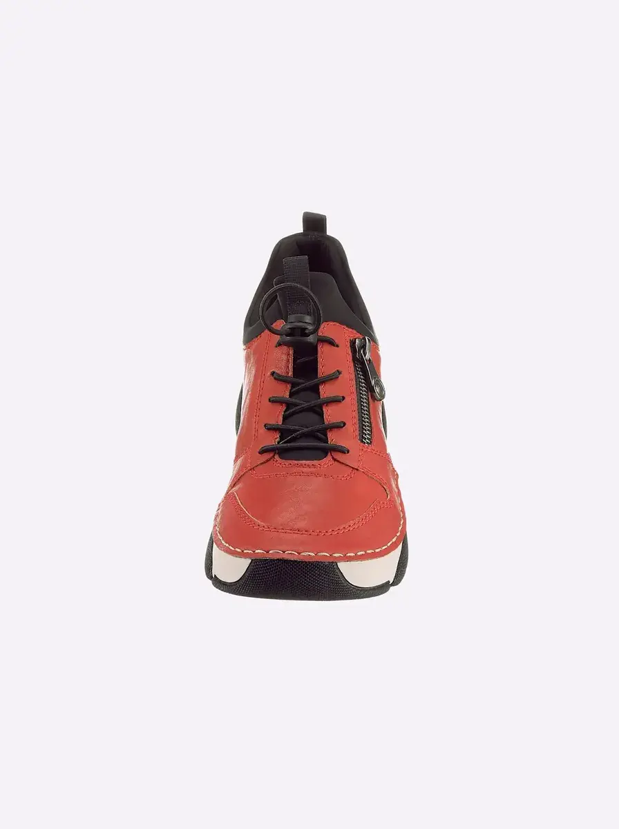 Если вы любите кроссовки, вам понравится эта модель от Rieker! В модных цветах и ​​на модной подошве. Верх из искусственной кожи и текстиля, внутренняя часть из текстиля. Легко надевается благодаря эластичным шнуркам и боковой молнии. Мягкая подкладка. Подошва из полиуретана, каблук около 35 мм. ширина Ф.