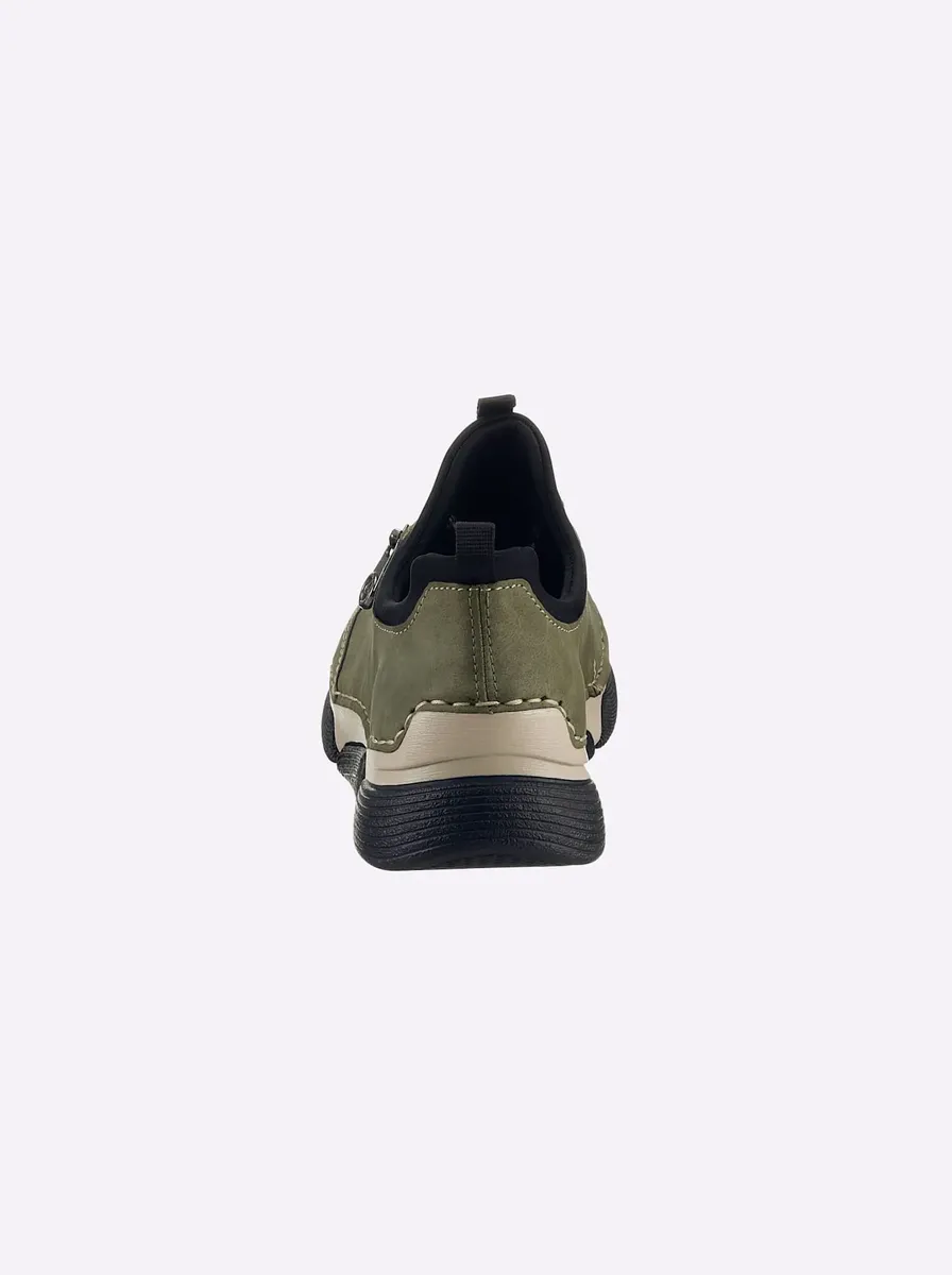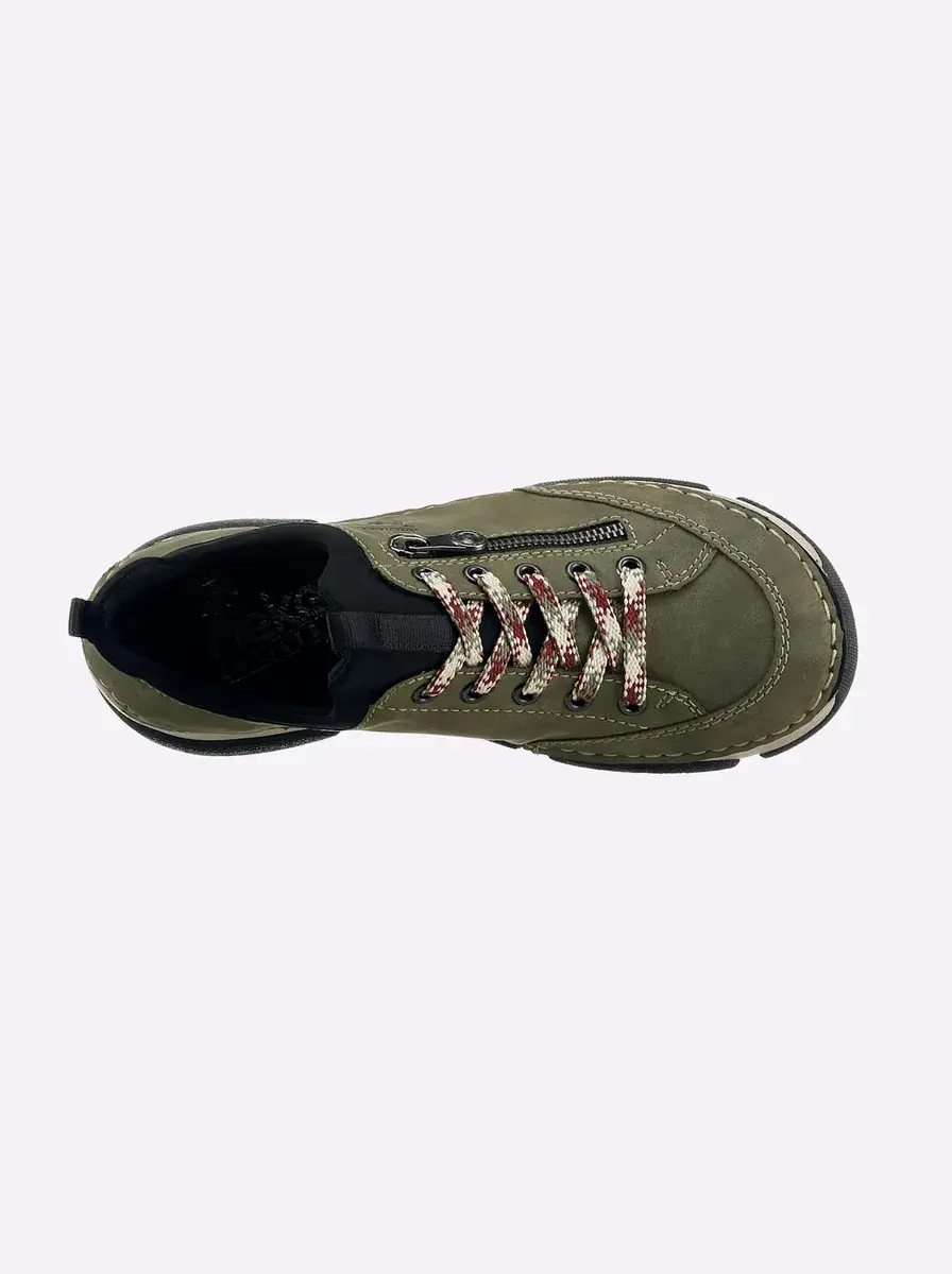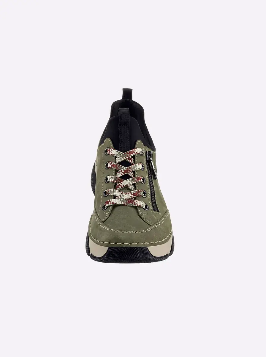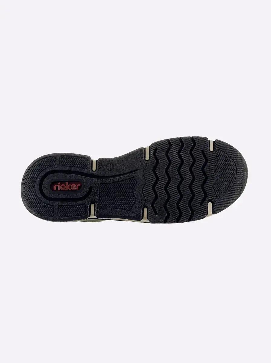 Если вы любите кроссовки, вам понравится эта модель от Rieker! В модных цветах и ​​на модной подошве. Верх из искусственной кожи и текстиля, внутренняя часть из текстиля. Легко надевается благодаря эластичным шнуркам и боковой молнии. Мягкая подкладка. Подошва из полиуретана, каблук около 35 мм. ширина Ф.