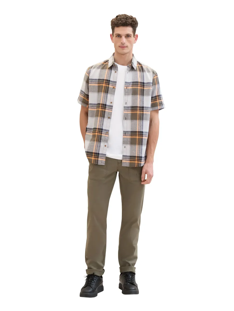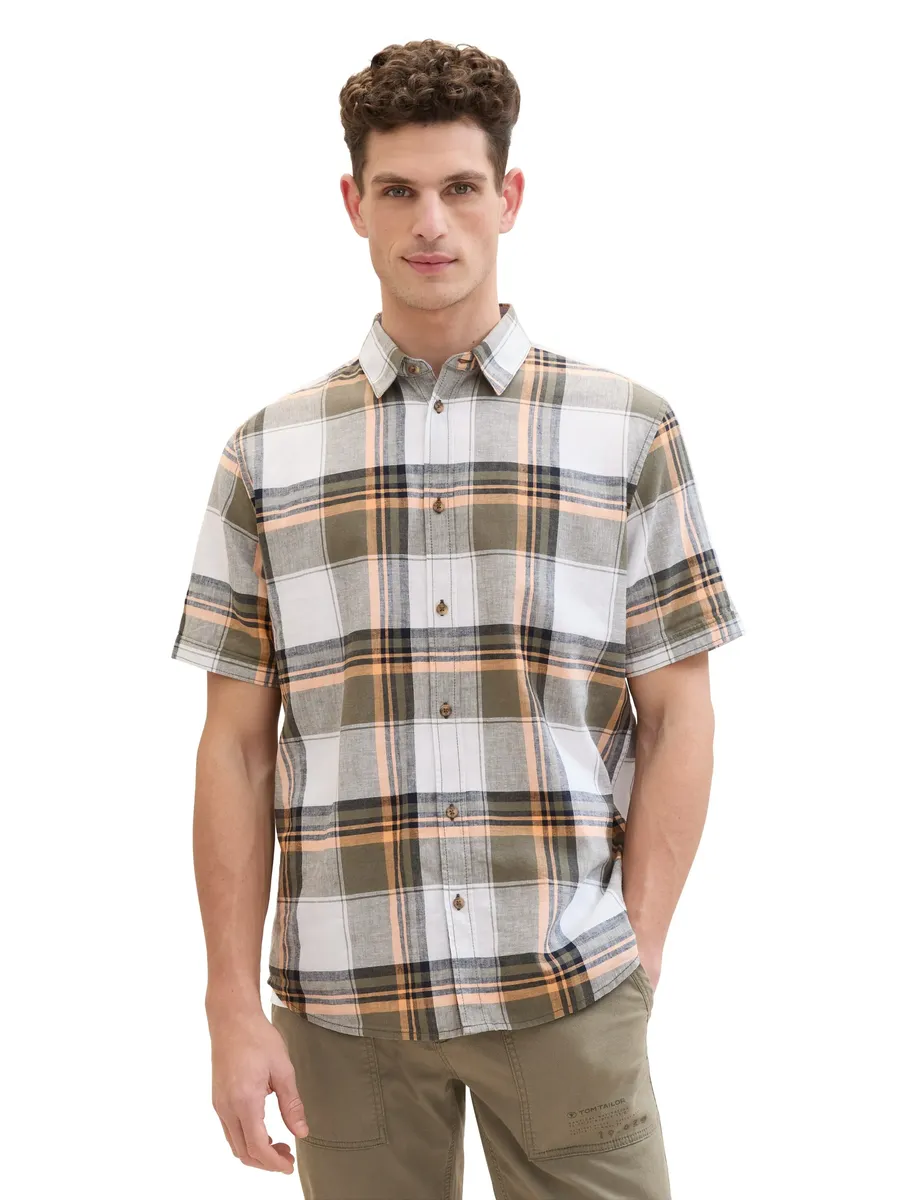 TOM TAILOR рубашка с короткими рукавами и клетчатым узором, оливковый