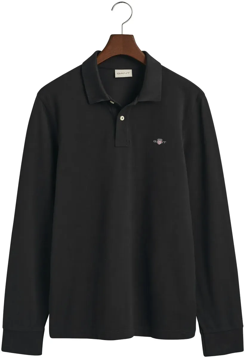Рубашка-поло Gant "REG SHIELD LS PIQUE RUGGER" с вышитым логотипом на груди, черный