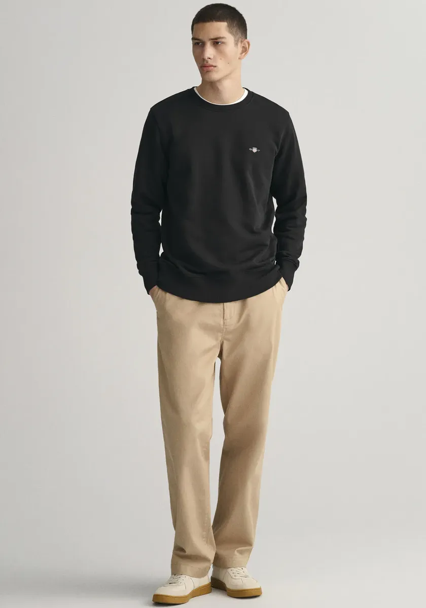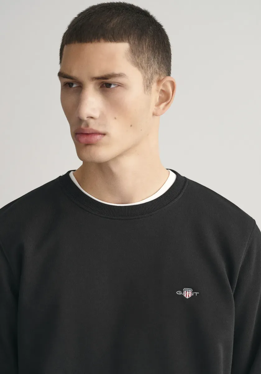 Толстовка Gant "REG SHIELD C-NECK SWEAT" с вышитым логотипом на груди, черный