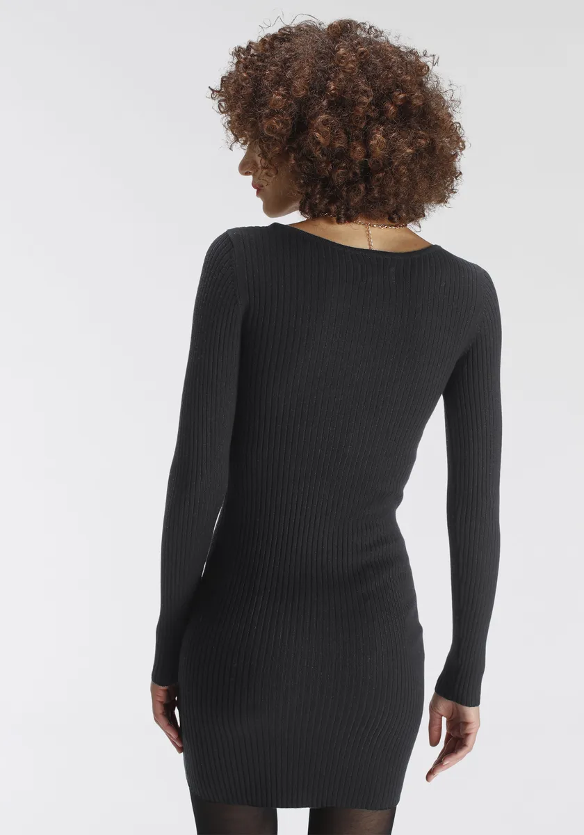 Трикотажное платье AJC из модной рубчатой ​​вязки, черный