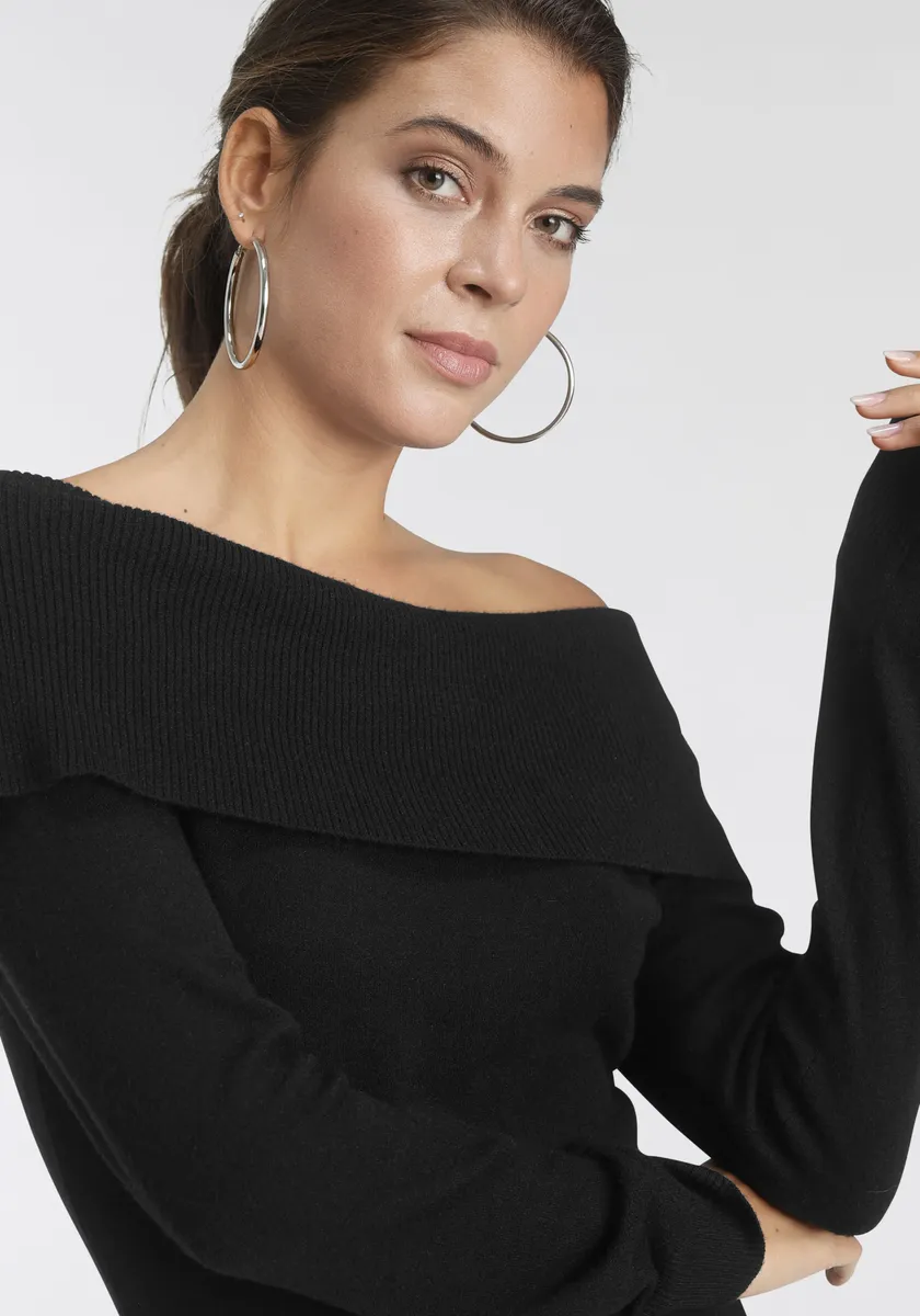 Трикотажное платье Laura Scott с вырезом Кармен, черный