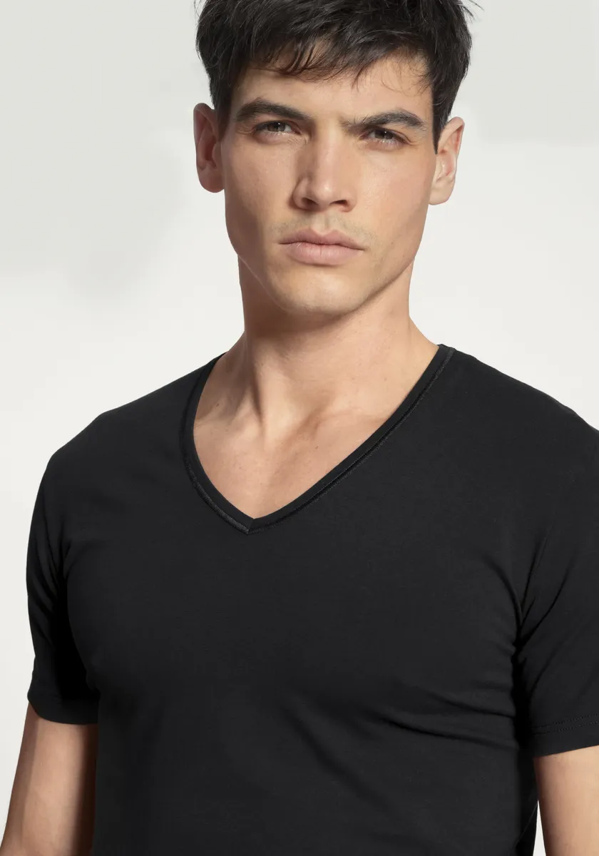 Футболка CALIDA "Cotton Code" с V-образным вырезом идеально сидит по фигуре, черный