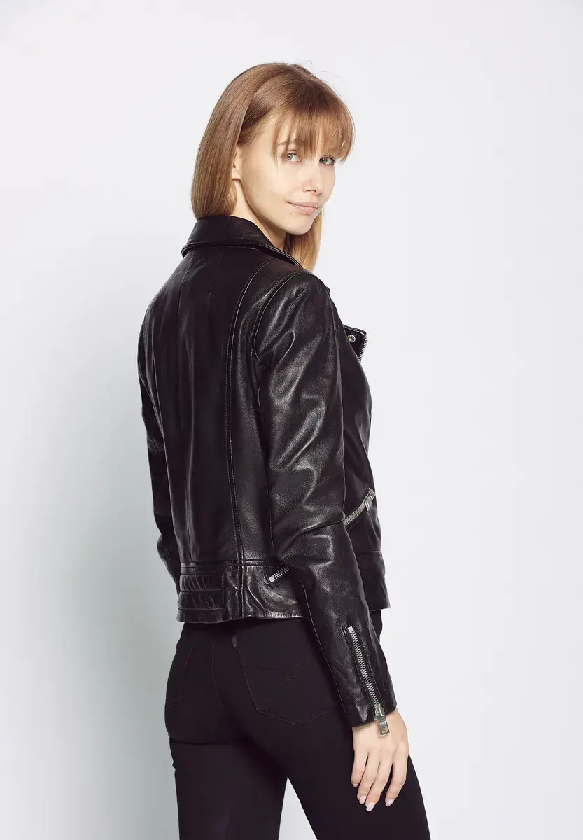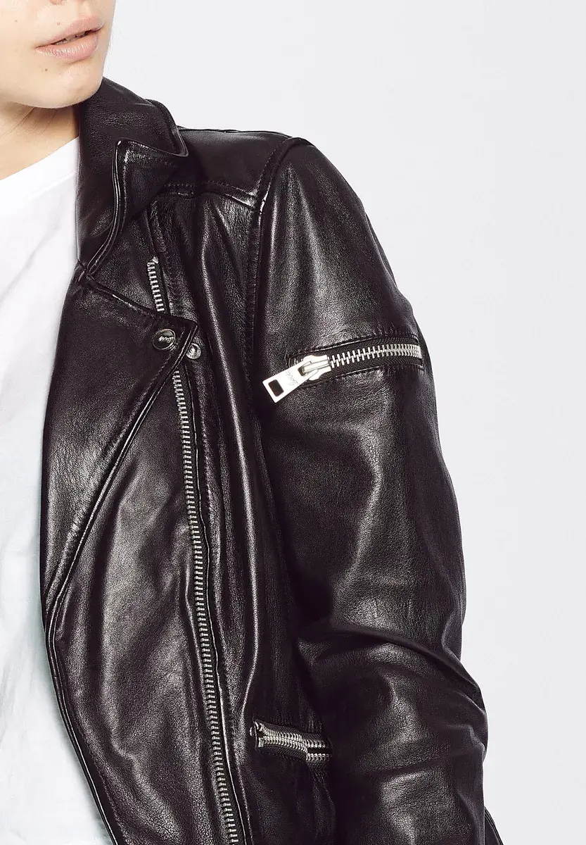 Байкерская кожаная куртка от модного бренда MAZE. Куртка имеет асимметричную застежку-молнию с двумя вертикальными боковыми карманами на молнии и широко расстегнутый воротник рубашки. Чтобы куртка идеально сидела по фигуре, в концы рукавов встроена внутренняя подкладка и молнии. Кожаная куртка приобретает необыкновенный вид благодаря красивым декоративным швам и декоративному карману на левом плече. Внутренний карман завершает гармоничный образ кожаной куртки. Случай: Вечеринка/Вечерняя одеждаБазовый: НетОтбеливание: Не отбеливать Глажение: Не гладитьПодкладка: Легкая подкладкаПол: ЖенскийРазмерный диапазон: Американские размерыСтрана-производитель: Пакистан Стиль куртки: Кожаная курткаКоллекция: Весна/Лето 20Воротник /Вырез: Рубашечный воротникМатериал подкладки: ХлопокМатериал Внешний материал: гладкая кожа, материал подкладки рукавов: полиэстер, свойства материала: кожа, состав материала: внешний материал: 100% кожа ягненка / внутренняя подкладка: 90% полиэстер, 10% полиэстер / подкладка рукавов: 100% полиэстер, детали верха: не указано, посадка: нормальная посадка, инструкция по уходу: специальная чистка кожи, тип/стиль изделия: куртка, крой: индивидуальный, специальные размеры, уровень товара: не указано, стиль: куртка Тип застежки: молния, длина рукава: длинный рукавДлина спинки: около 53 см по размеру. С