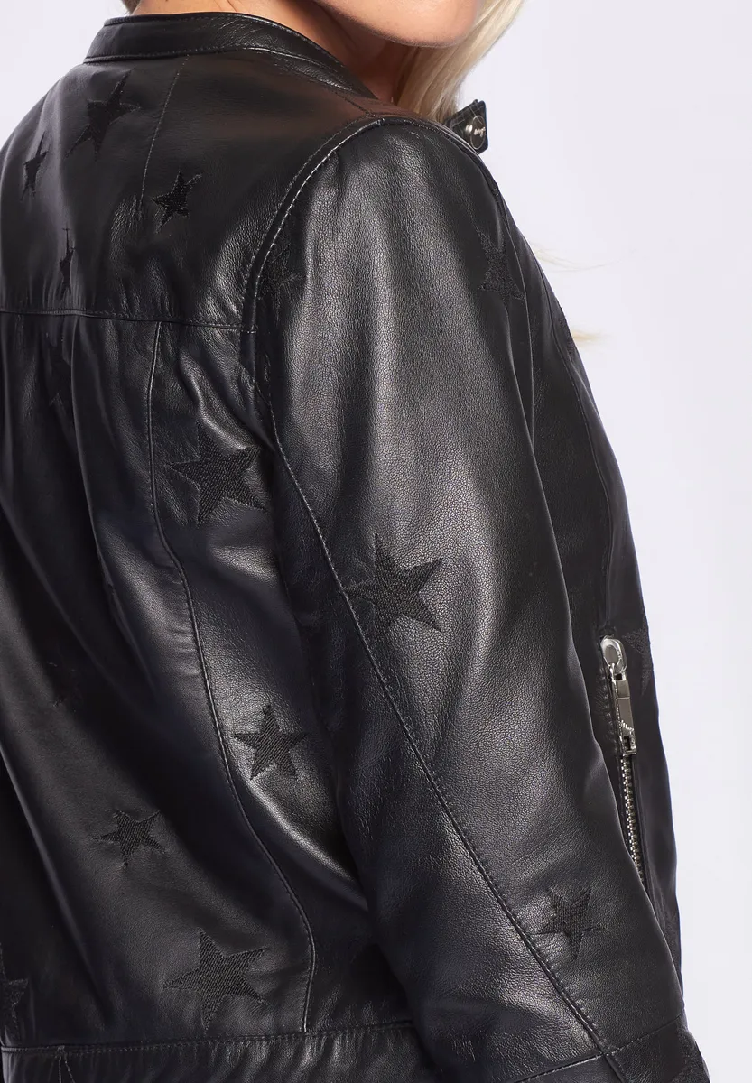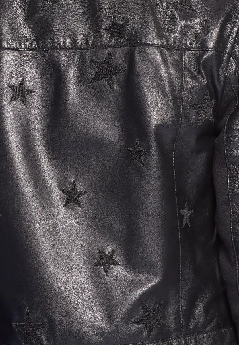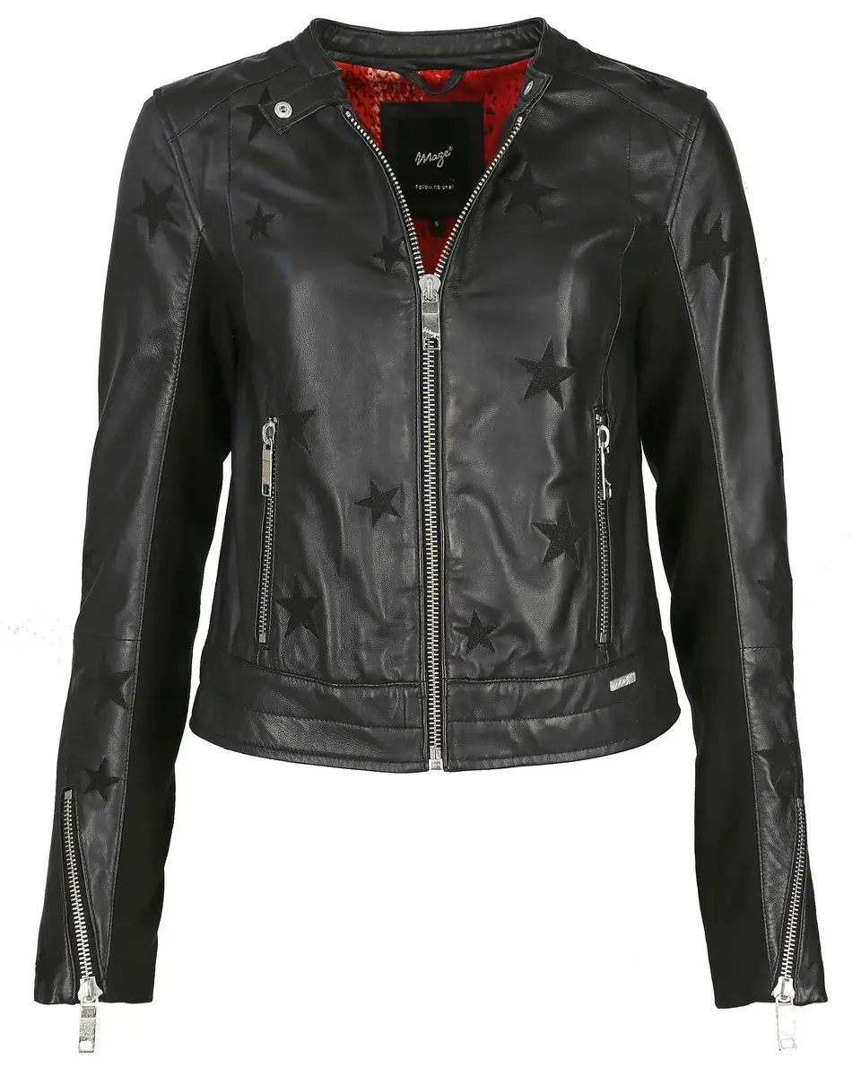 Байкерская куртка от MAZE с вышитыми символами звезд. Куртка имеет прямую молнию с двумя встроенными боковыми карманами на молнии. Слегка адаптированный крой гарантирует оптимальную посадку и высокий уровень комфорта. Для этого в манжеты вделаны дополнительные косые молнии. Красная внутренняя подкладка придает что-то определенное. Случай: Одежда для вечеринок/вечеринокБазовый режим: нетОтбеливание: Не отбеливатьГлажение: Не гладитьПодкладка: Легкая подкладкаСостав материала: Верхний материал: 100% кожа ягненка / Подкладка: 100% полиэстерРазмерный ряд: Американский размер Стиль куртки: Кожа курткаКоллекция: Весна/Лето 20Воротник/вырез: круглый вырезМатериал: КожаМатериал подкладки: ПолиэстерМатериал внешней ткани: Гладкая кожаМатериал подкладки рукавов: ПолиэстерСвойства материала: КожаПосадка: Облегающий кройИнструкции по уходу: Специальная чистка кожиТип/стиль: курткаДлина по спинке: около 52 см для размера. SCкрой: ПриталенныйСпециальные размерыУровень продукта: не указанСтиль: курткаТип застежки: молнияДлина рукава: длинный рукав