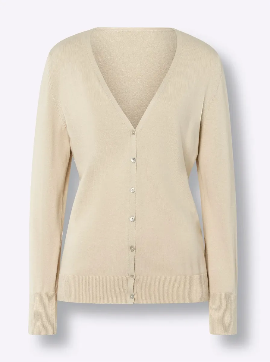 Жакет в стиле кардиган тонкой вязки. Элегантная базовая модель с блестящими перламутровыми пуговицами. V-образный вырез и тонкие ребристые манжеты. Мягкий, тонкий трикотаж из комфортного хлопка. Застегивается спереди на пуговицы. Длина около 60 см. 100% хлопок, 50% хлопок, 50% полиакрил. Серый меланж: 50% хлопок, 50% полиакрил. Машинная стирка.