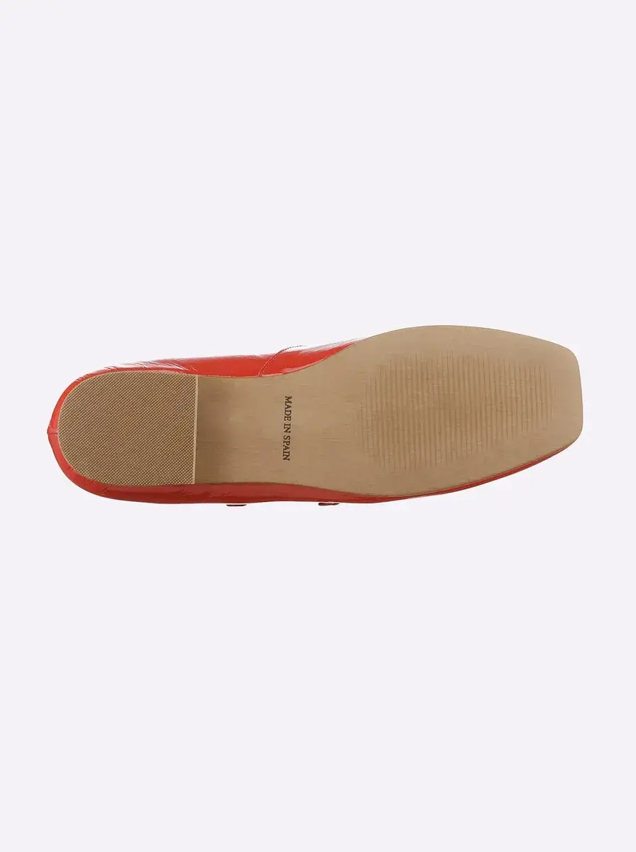 Балетки из блестящей яловой лаковой кожи. С женственными бретелями. Подкладка текстильная, стелька кожаная. Высота каблука около 10 мм.
