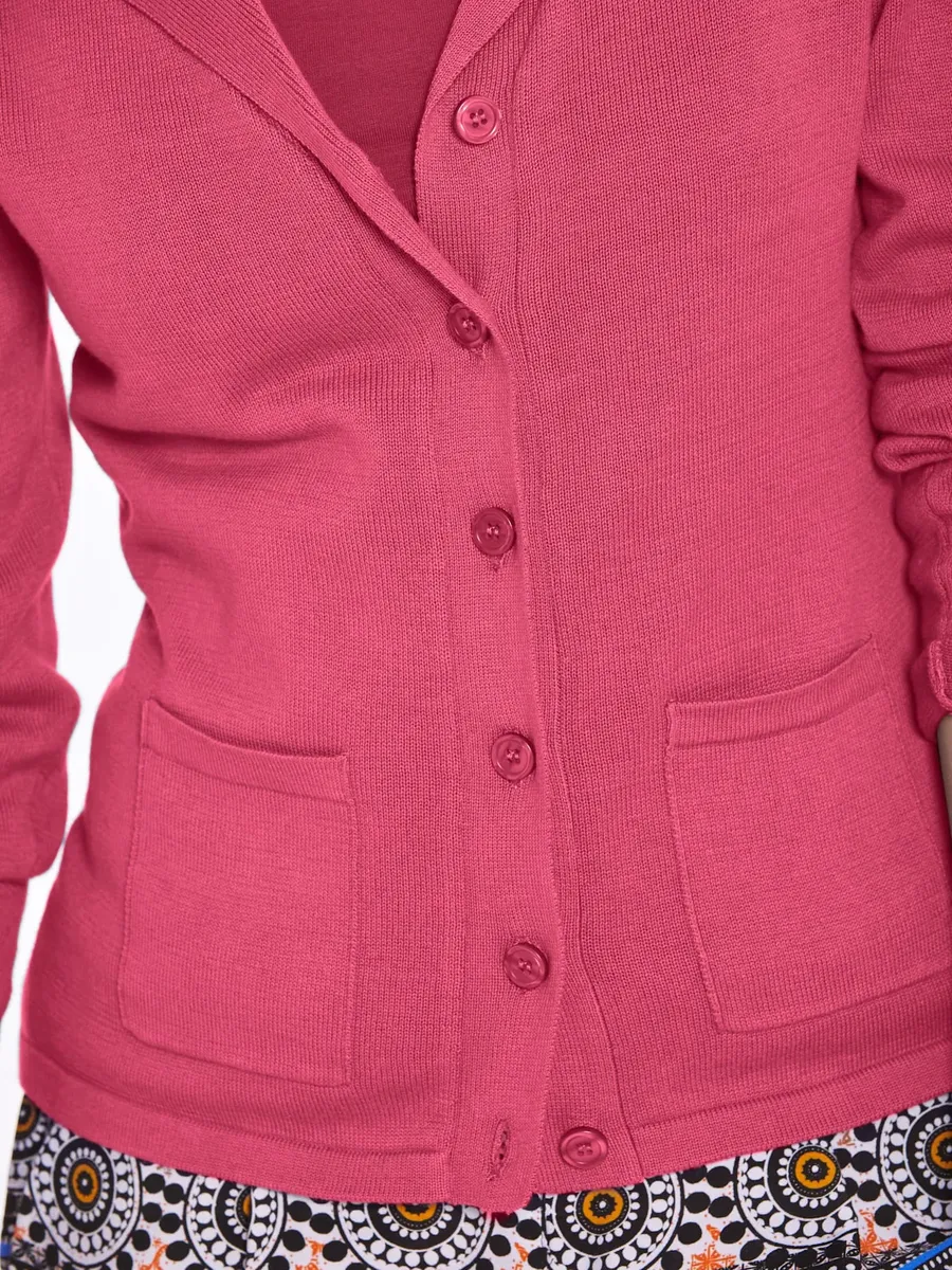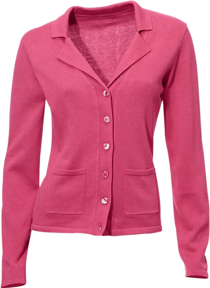 Жакет тонкой вязки Мягкий тонкий трикотаж, облегающий фигуру, с воротником с лацканами, застежкой на пуговицы и длинными рукавами. 100% хлопок. Машинная стирка.