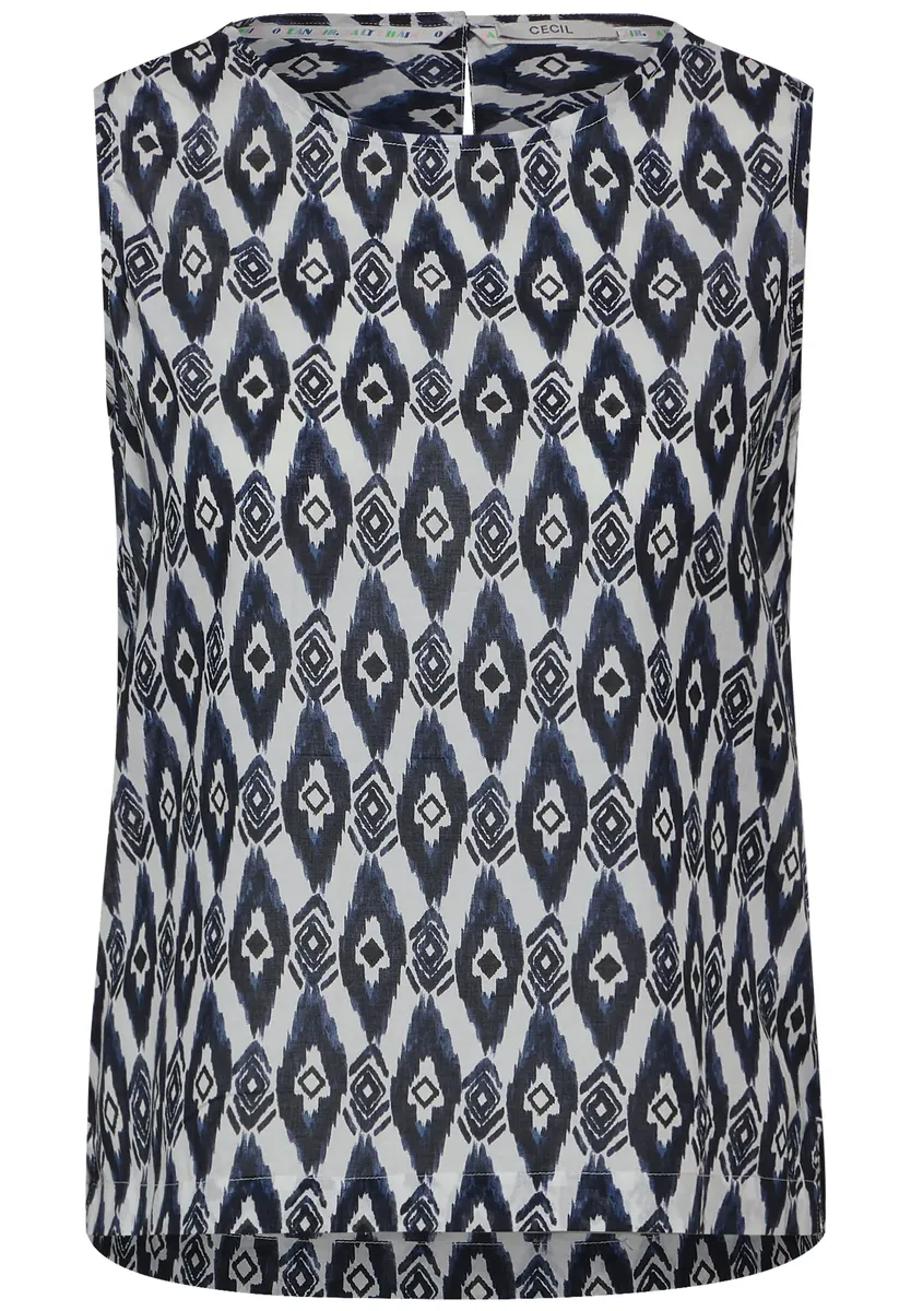 Женская блузка CECIL с принтом, без рукавов, круглый вырез, минимальный рисунок, чистый хлопок, пуговица и разрез на шее. Блузка-топ без рукавов для женщин от CECIL с элегантным круглым вырезом и минималистичным узором создает неподвластный времени образ. Модель изготовлена ​​из чистого хлопка, ее удобно носить, а пуговица и разрез на шее придают ей изысканный вид. Верх блузки с круглым вырезом, минимальный узор, пуговица из чистого хлопка и разрез на шее. Размеры для европейского размера M примерно: длина 64 см, обхват груди 107 см, ширина низа 116 см. Материал: 100% хлопокОсобенности: изготовлен из чистого хлопкаСостав материала: 100% хлопокРазмер Примечание: Изделие изготовлено из большего размера.Материал: 100% хлопок Инструкции по уходу Отбеливание: Не отбеливать Инструкции по уходу Гладить: Гладить при умеренной температуре (2 точки) / Гладить при умеренной температуре / Утюжить при умеренной температуре Инструкции по уходу Уход за тканями: Не чистить (круг - крест) / Не подвергать химической чистке Указания по уходу Сушка: Не использовать машинную сушку Указания по уходу Стирка: Деликатный цикл 30 °Страна-производитель: INЦелевая группа: Женщины