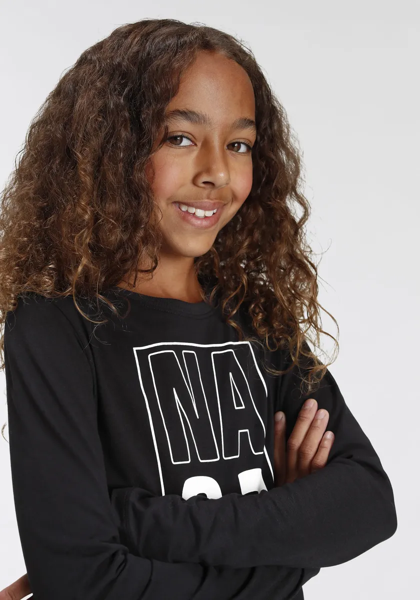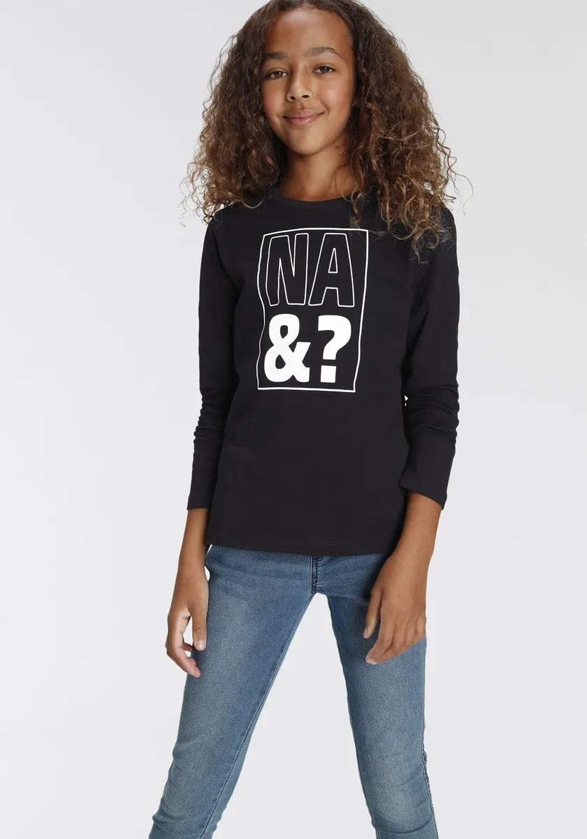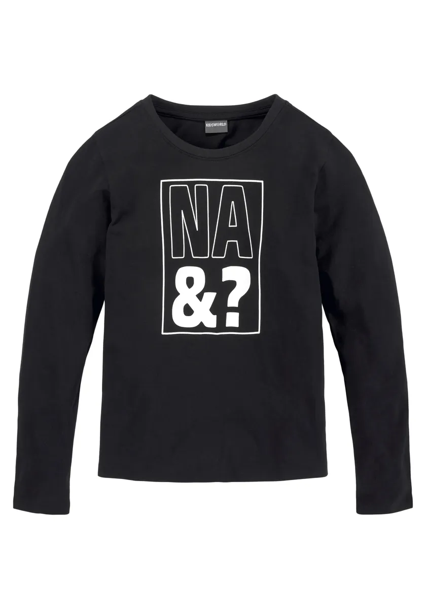 KIDSWORLD рубашка с длинными рукавами "NA&?", принт, черный