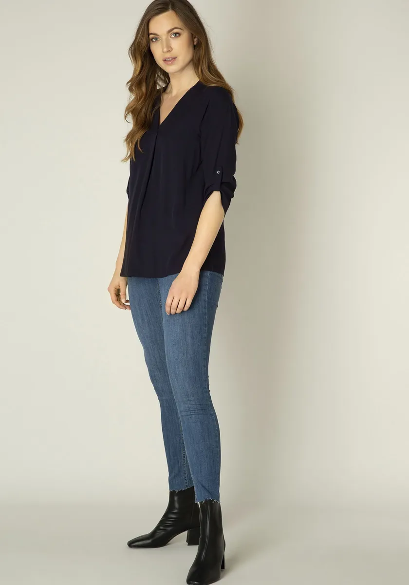 Блузка-рубашка Base Level с V-образным вырезом, синий