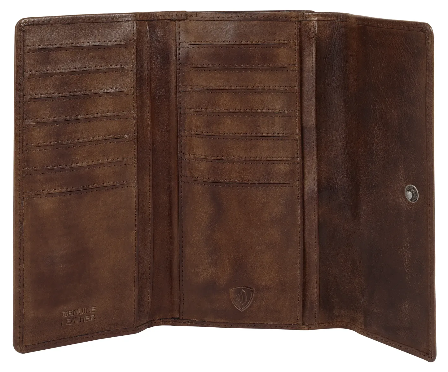 Безопасно и практично одновременно: женский кожаный кошелек в винтажном стиле от Spikes & Sparrow. Благодаря конструкции, состоящей из двух частей, кошелек обеспечивает четкую организацию карт и наличных. RFID-защита обеспечивает дополнительную безопасность ваших личных данных. Всего в 14 слотах для карт у вас есть место для всех ваших клиентских, бизнес- и кредитных карт. Отделение для монет на молнии по всему периметру также разделено на две части — идеально подходит для хранения банкнот. Очаровательный винтажный кошелек, которым вы будете наслаждаться долгое время!* 100% воловья кожа* RFID-защита от несанкционированного доступа посредством сканирования* 14 отделений для карт внутри* 4 прорезных кармана внутри* Отделение для монет, состоящее из двух частей, с молнией по всему периметру* тонкое тиснение логотипа спередиОсобенности: натуральная кожаДополнение к названию: натуральная кожаШирина: 19 смВес: 150Высота: 11 смГлубина: 3 смКоличество внутренних карманов: 4Количество отделений для карт: 14Наружный материал: 100% коровья кожаРазмер: один размерОсновная застежка: застежка на кнопкиВнутренний материал: смесь материаловВнутренний вид: соответствующий цветВес: 150 гОтделение для монет: есть (молния)Вид Поверхность: винтажОбъем: 0,1Формат: Альбомный формат