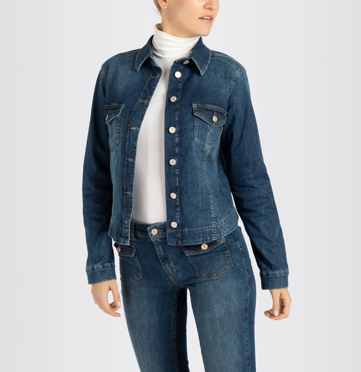 Женская джинсовая куртка от MAC — это мода, которая согреет вас и при этом выглядит стильно. Фирменный лейбл делает образ более расслабленным. Джинсовая куртка из тканого материала по-прежнему остается легкой даже после долгого дня. Подходит для поездок на свежем воздухе или по дороге на работу.