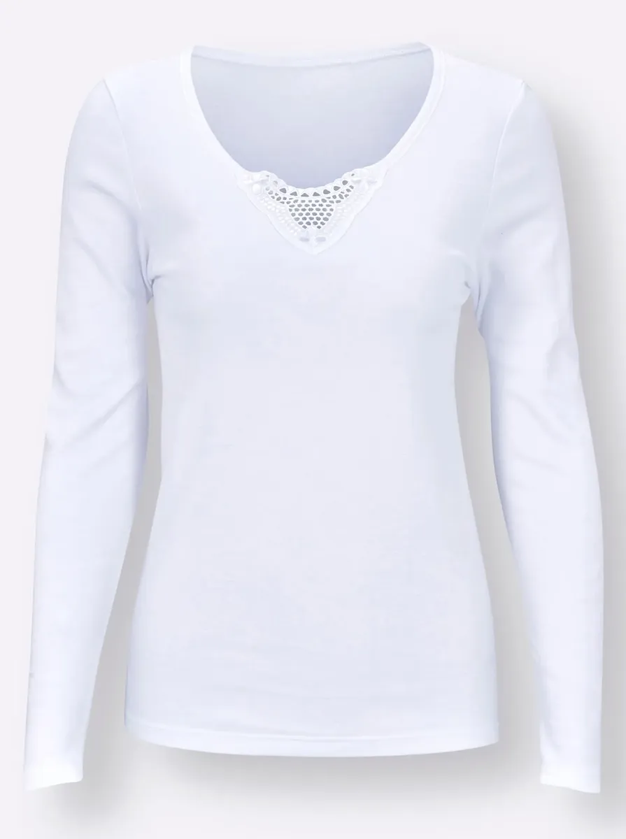 Благодаря мягкому начесу на внутренней стороне этот спенсер с длинными рукавами в двойной упаковке станет настоящим фаворитом! С круглым вырезом и элегантным мотивом из батиста. Задняя часть удлинена. 100% хлопок (OCS).
