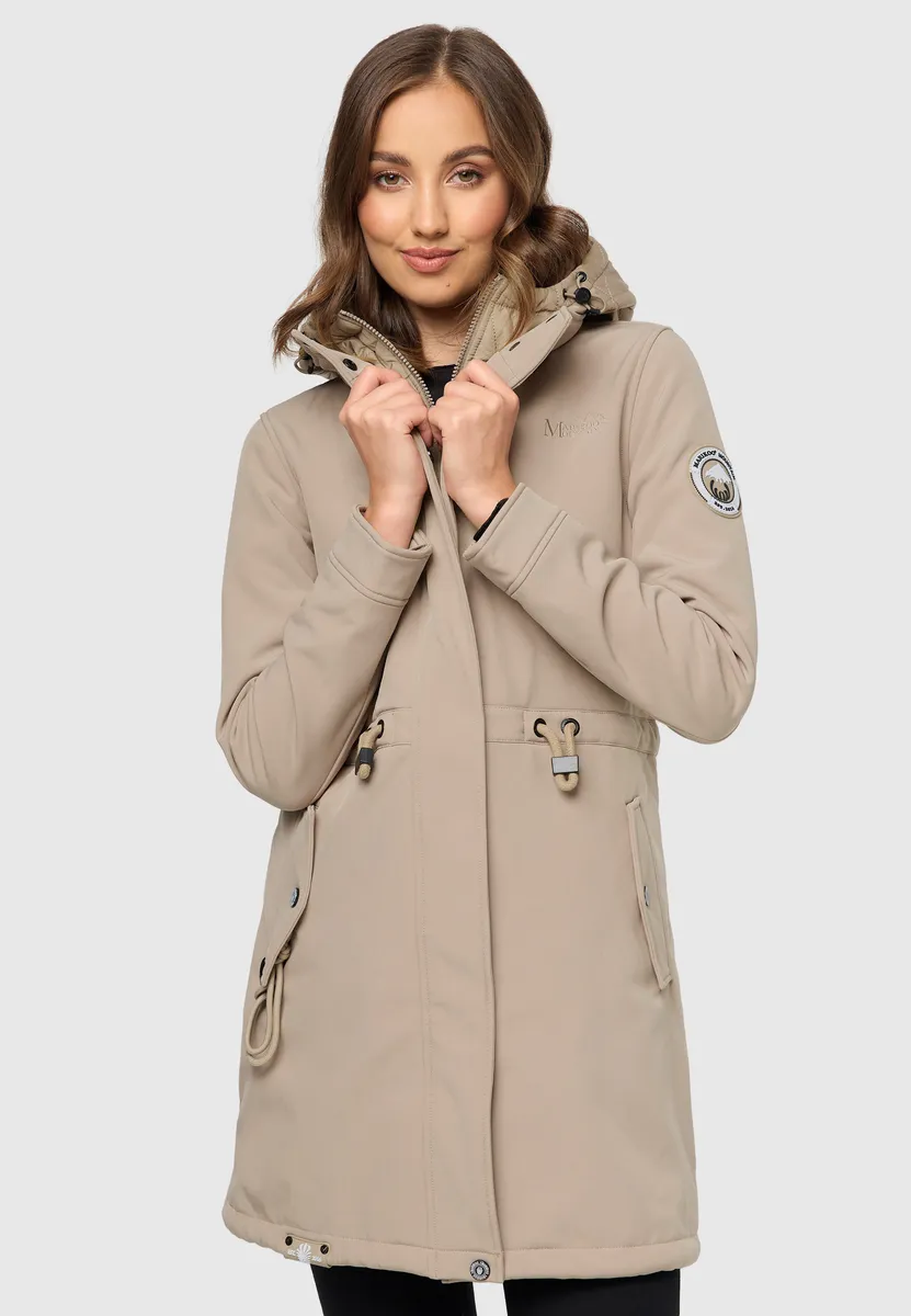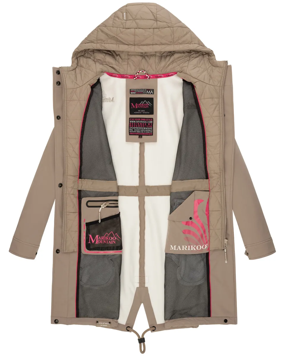 Женская куртка из софтшелла Marikoo Предлагается теплая женская куртка из софтшелла от модного бренда "Marikoo". Из текущей коллекции Marikoo Mountain. Модель впечатляет водоотталкивающим внешним материалом, очень хорошим качеством изготовления, множеством карманов и оптимальной посадкой. Кулиска на талии позволяет отрегулировать посадку по вашему индивидуальному вкусу. Это стильная, современная, но в то же время сдержанная женская куртка из софтшелла, которую можно сочетать с множеством разных нарядов. Благодаря 8 цветам на выбор и размерам S-3XL подойдет каждая женщина. Найдите для себя подходящую куртку. Куртки Marikoo всегда отражают актуальные тенденции моды и изготавливаются с большим вниманием к деталям. Приобретите одну из этих курток премиум-класса и будьте впечатлены уникальным соотношением цены и качества. Бренд: MarikooЦвет: вы можете выбрать вышеРазмер: вы можете выбрать вышеНаружный материал: 95% полиэстер, 5% эластанВнутренний материал: 100% полиэстерПодкладка/набивка: 100% полиэстерОчень хорошее качество и тщательное исполнениеОчень удобно носить и оптимальная посадкаИдеальный крой, сзади длиннее, чем спередиВысокозакрывающийся воротник защищает от ветра и холодаТеплоизоляционный, но при этом дышащийВнутри вся спина покрыта теплой флисовой тканью2 боковых кармана сзади Передняя часть с кнопкамиОба кармана внутри отделаны теплым флисомОдин внутренний карман на молнии, идеально подходит для мобильных телефонов, аккумуляторов, беспроводных наушников и других ценных вещейЕще один большой внутренний карман с кнопкамиПояс для оптимальной регулировки фигурыКапюшон с клетчатым стеганым узором ( не снимается) Логотип Marikoo Mountain, вышитый на левой груди. Нашивка Marikoo Mountain на левом плече. Застежка-кнопка на концах рукавов для регулировки посадки. Прочная молния во всю длину. Дополнительная планка с пуговицами защищает от ветра и холода. Слегка приталенный крой, идеальная посадка. Очень удобно носить. носить