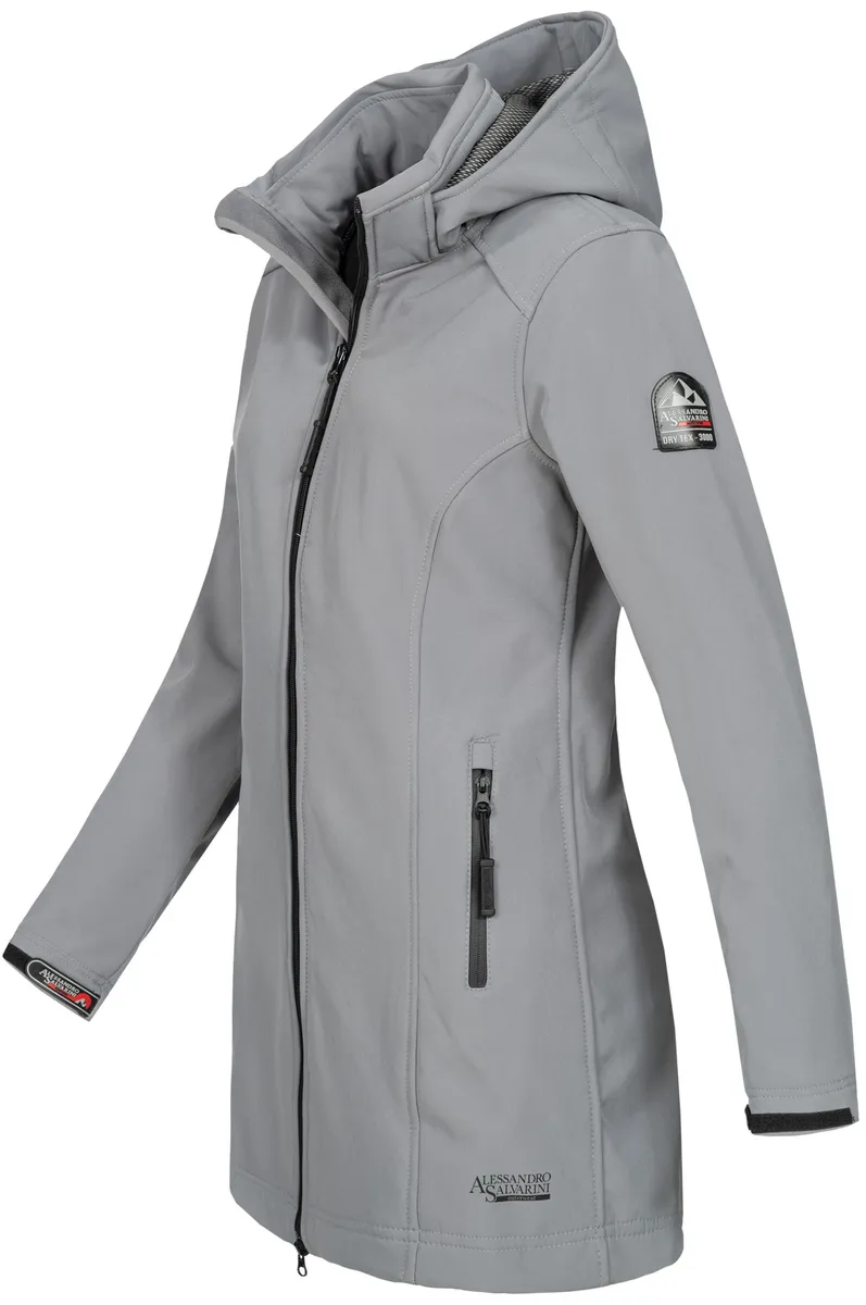 Куртка софтшелл Alessandro Salvarini "Alessia", длинная, со съемным капюшоном, серый