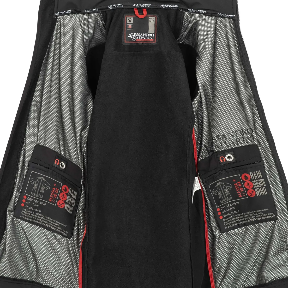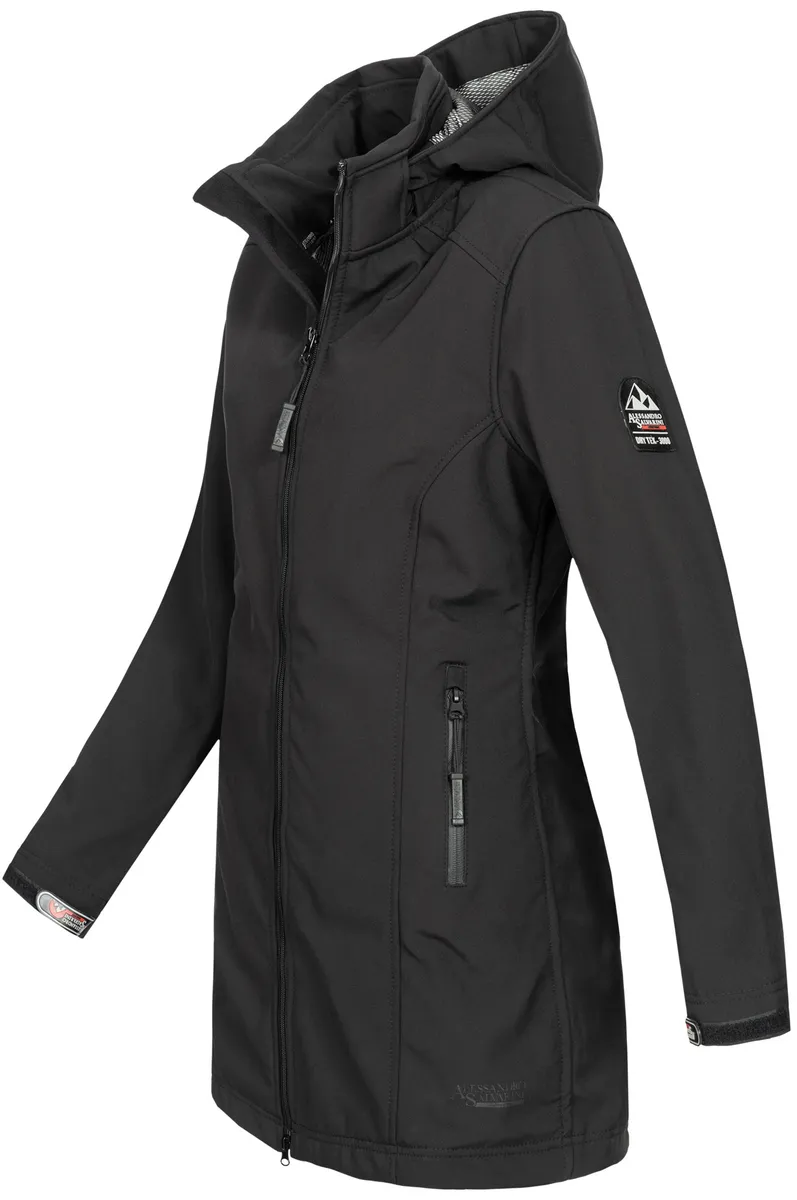 Куртка софтшелл Alessandro Salvarini "Alessia", длинная, со съемным капюшоном, черный