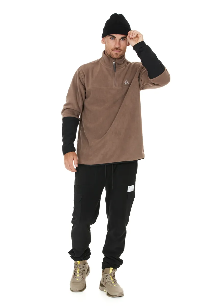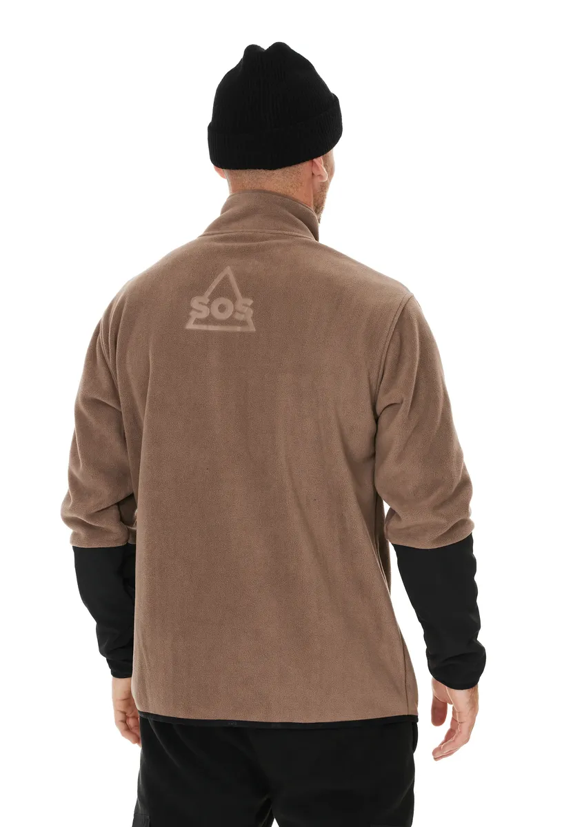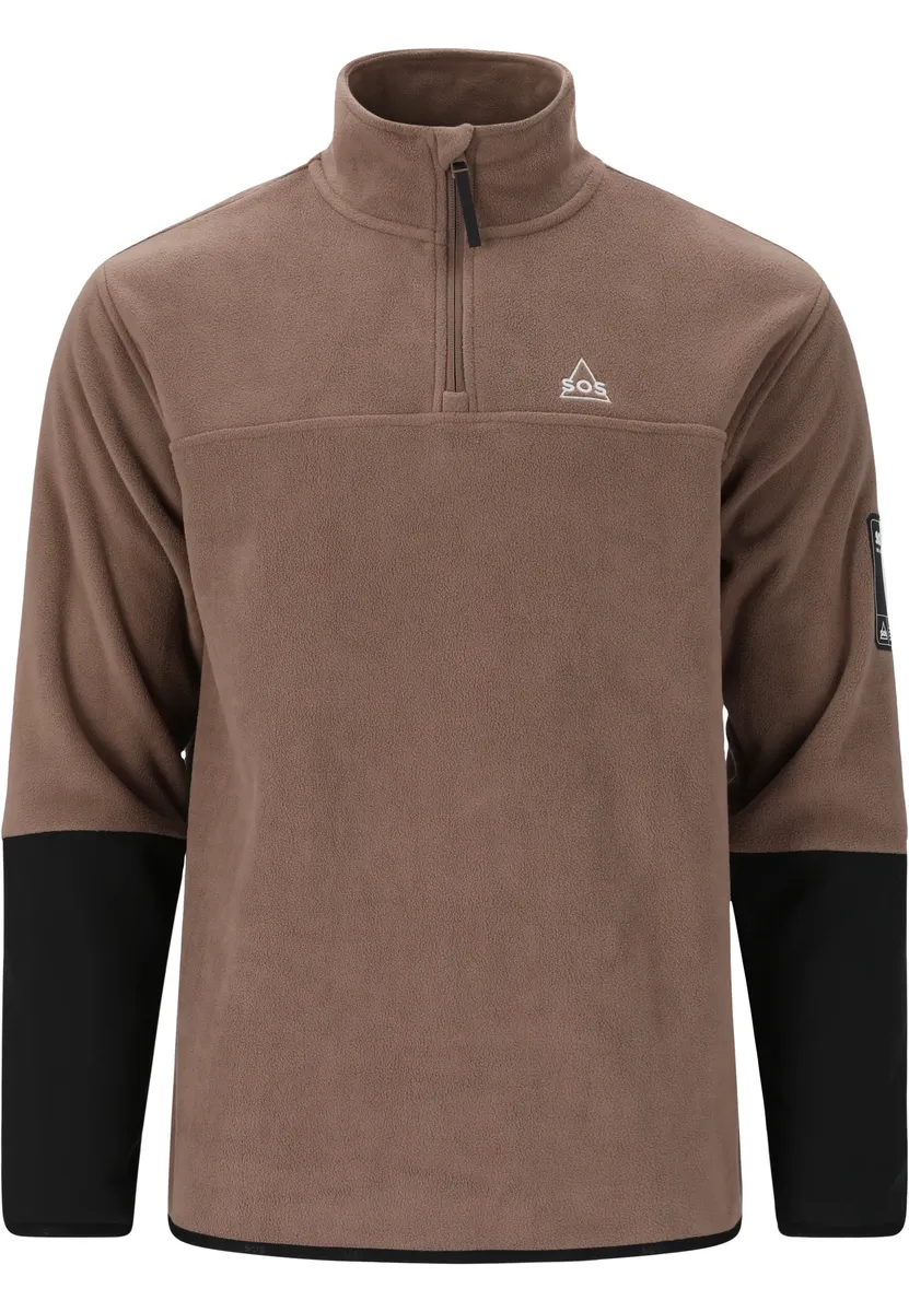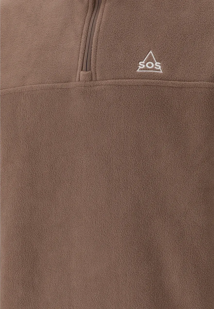 Благодаря половинной молнии YKK с защитой подбородка на высоком воротнике этот практичный флисовый свитер от SOS отлично подходит для ношения как в холодные, так и в немного теплые дни. Высококачественная модель изготовлена ​​экологически чистым способом из переработанного полиэстера и идеально подходит для пеших прогулок, зимних видов спорта или даже повседневной жизни. Он имеет простой монохромный дизайн и всегда идеально сидит по фигуре благодаря эластичным манжетам и эластичному поясу.
