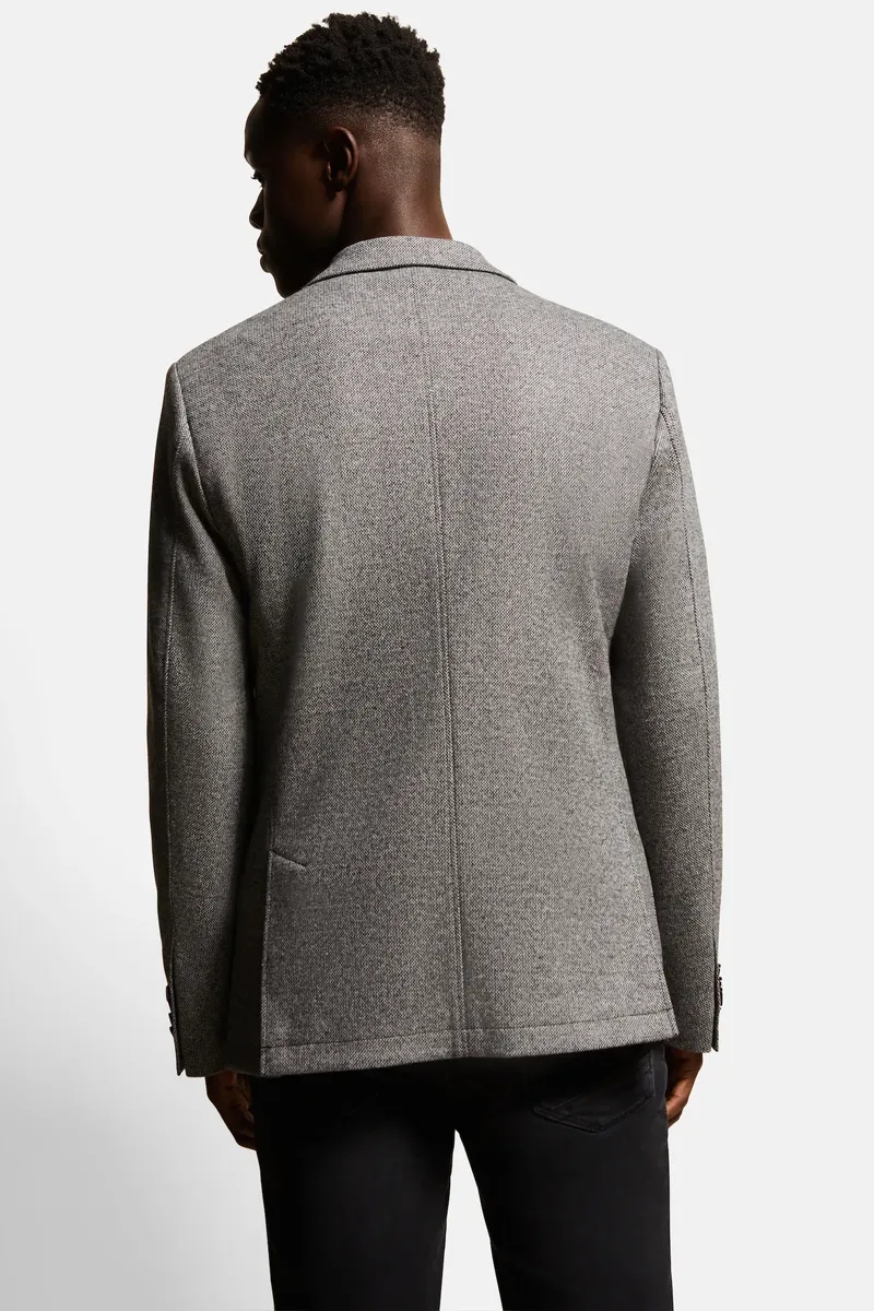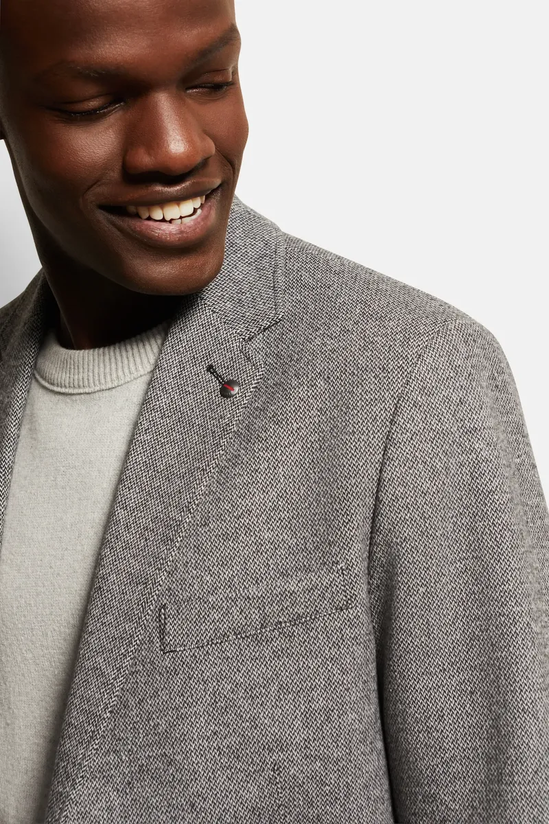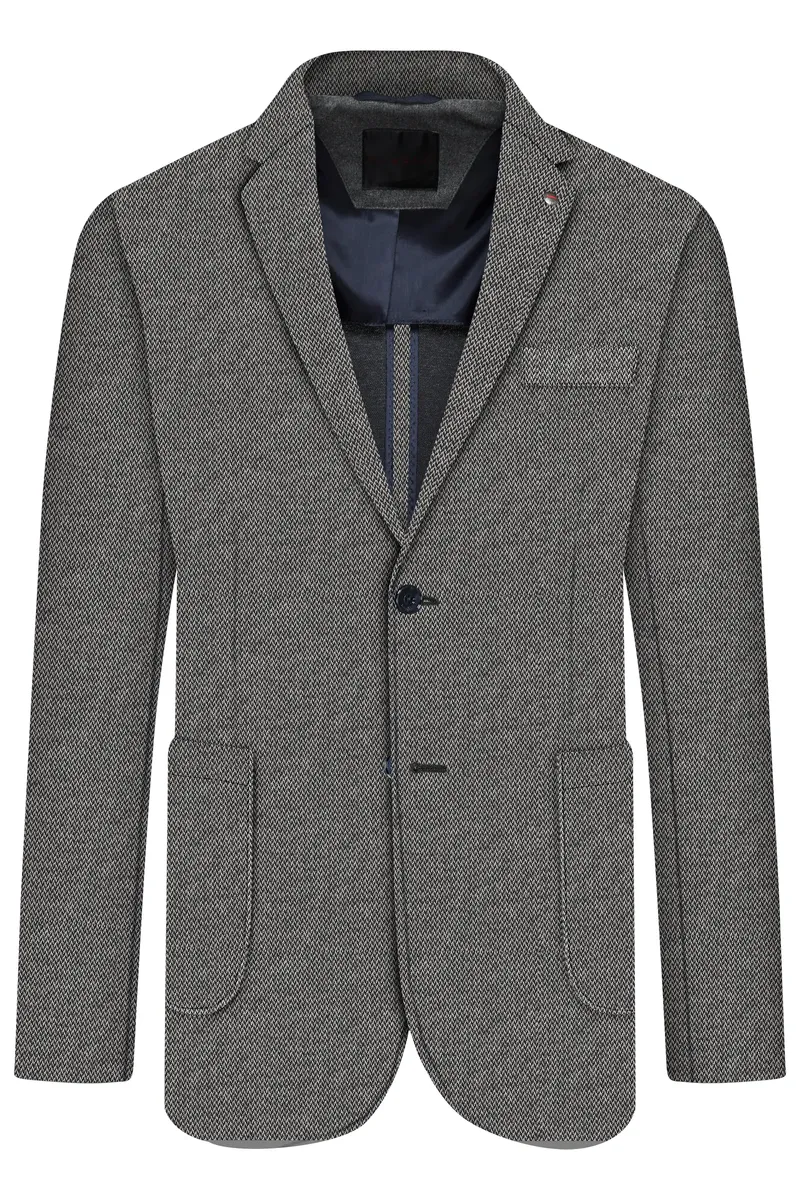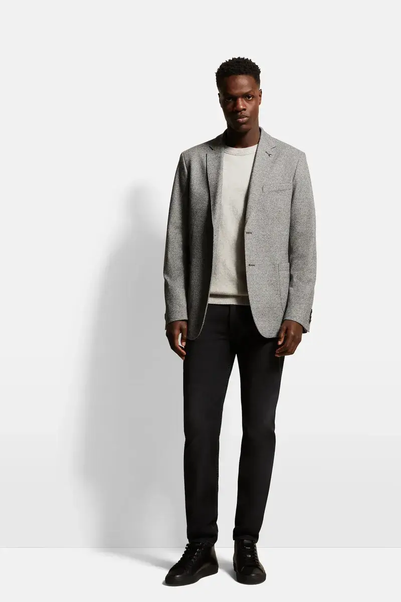 Классический жакет с воротником с лацканами впечатляет своим облегающим силуэтом. Накладные карманы и нагрудный карман придают куртке спортивный вид. Боковые разрезы обеспечивают свободу движений.