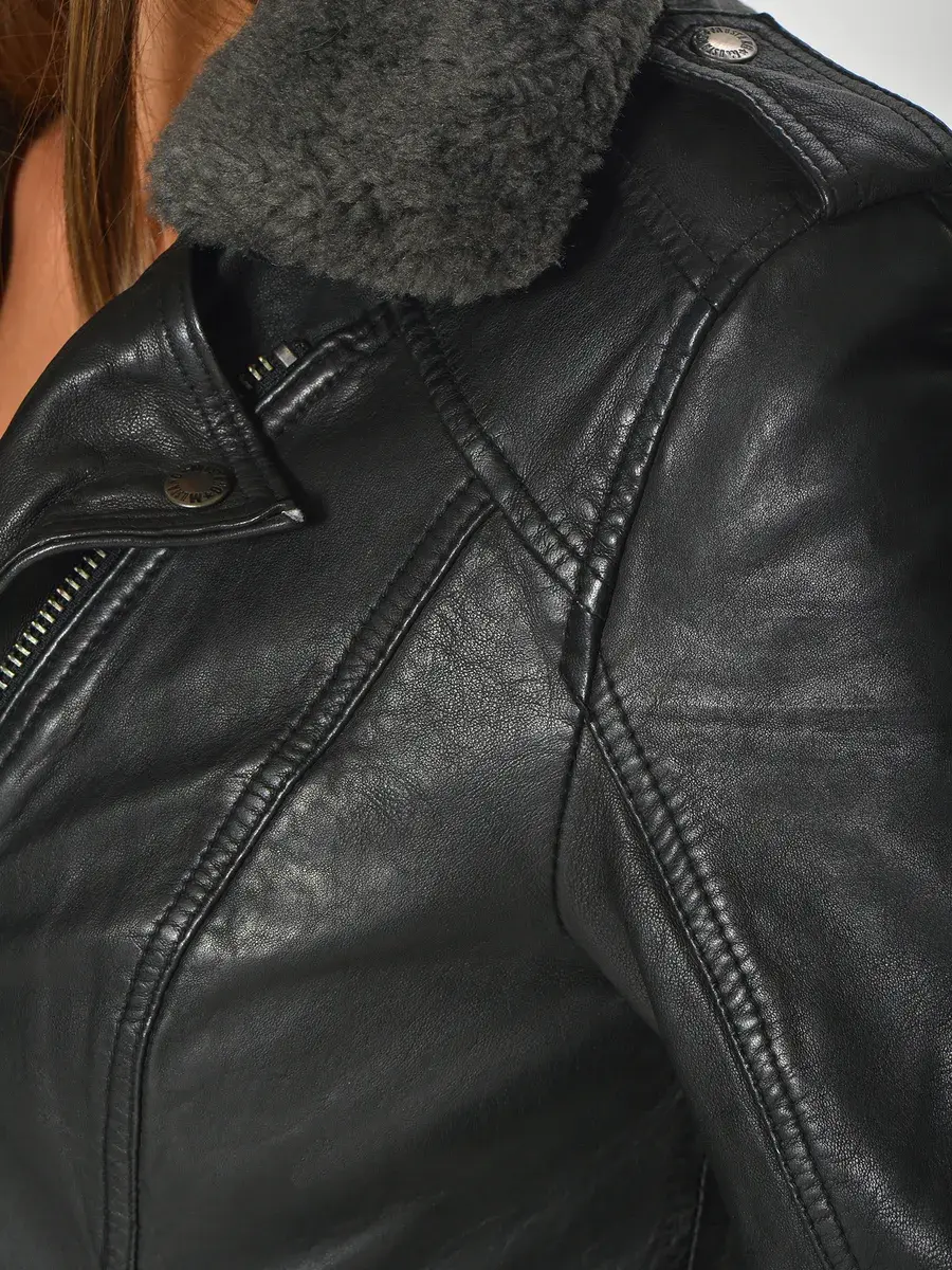 Кожаная куртка в байкерском стиле от модного бренда Mustang.