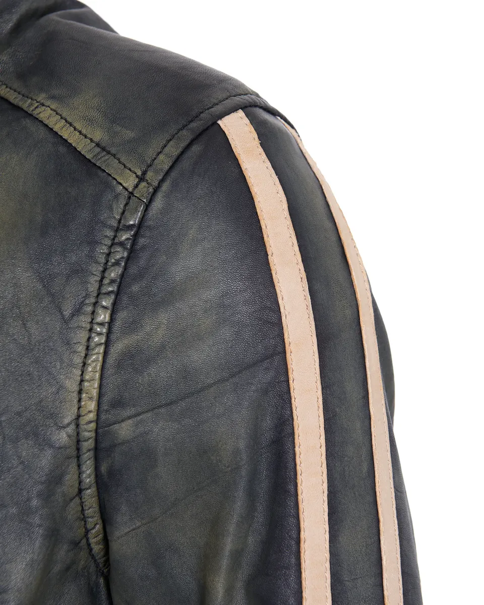 Куртка украшена тщательно продуманными деталями, такими как повседневные карманы на молнии, боковые полосы на рукавах и красивый воротник-стойка. Куртка закрывается на молнию. Благодаря прямому крою эта куртка предлагает множество возможных комбинаций. Отбеливание: Не отбеливать. Состав материала: Материал верха: 100% кожа, овчина / подкладка: полиэстер. Подкладка: легкая подкладка. Страна производитель: Пакистан Производитель: JCC Коллекция: Осень/Зима. 14 Форма воротника: воротник-стойка. Материал подкладки: хлопок. Материал внешней ткани: гладкая кожа. Примечание к материалу: нет/не актуально. Рисунок: однотонный. Покрой: прямой. Инструкции по уходу: специальная чистка кожи. Тип/стиль: байкерский. Длина спинки: около 70 см для данного размера. LСезон: весна-летоТип застежки: молнияНабивка: нет/не актуальноЦелевая группа: мужчиныДлина рукава: длинный рукав