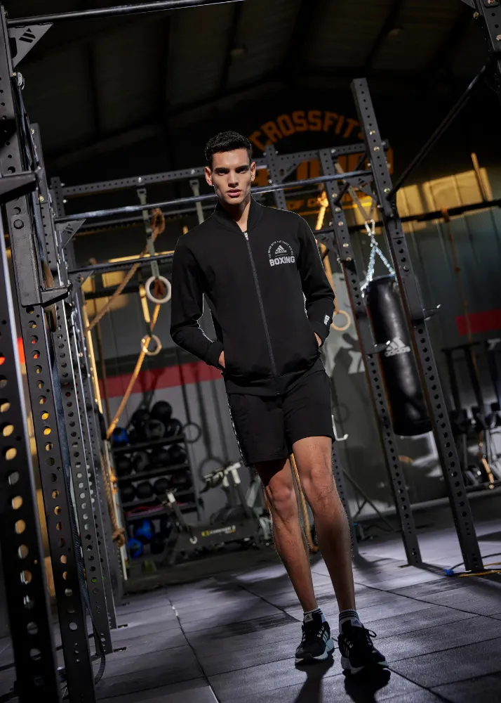 Куртка-бомбер adidas Boxwear изготовлена ​​из смеси полиэстера и хлопка (65/35%). Благодаря приятному мягкому материалу куртка гарантирует превосходный комфорт при ношении, а благодаря простому внешнему виду ее можно использовать в качестве образа для отдыха. С принтом логотипа adidas на груди и шее, а также тремя полосками на спине. ВНИМАНИЕ: изделие на размер меньше обычного.