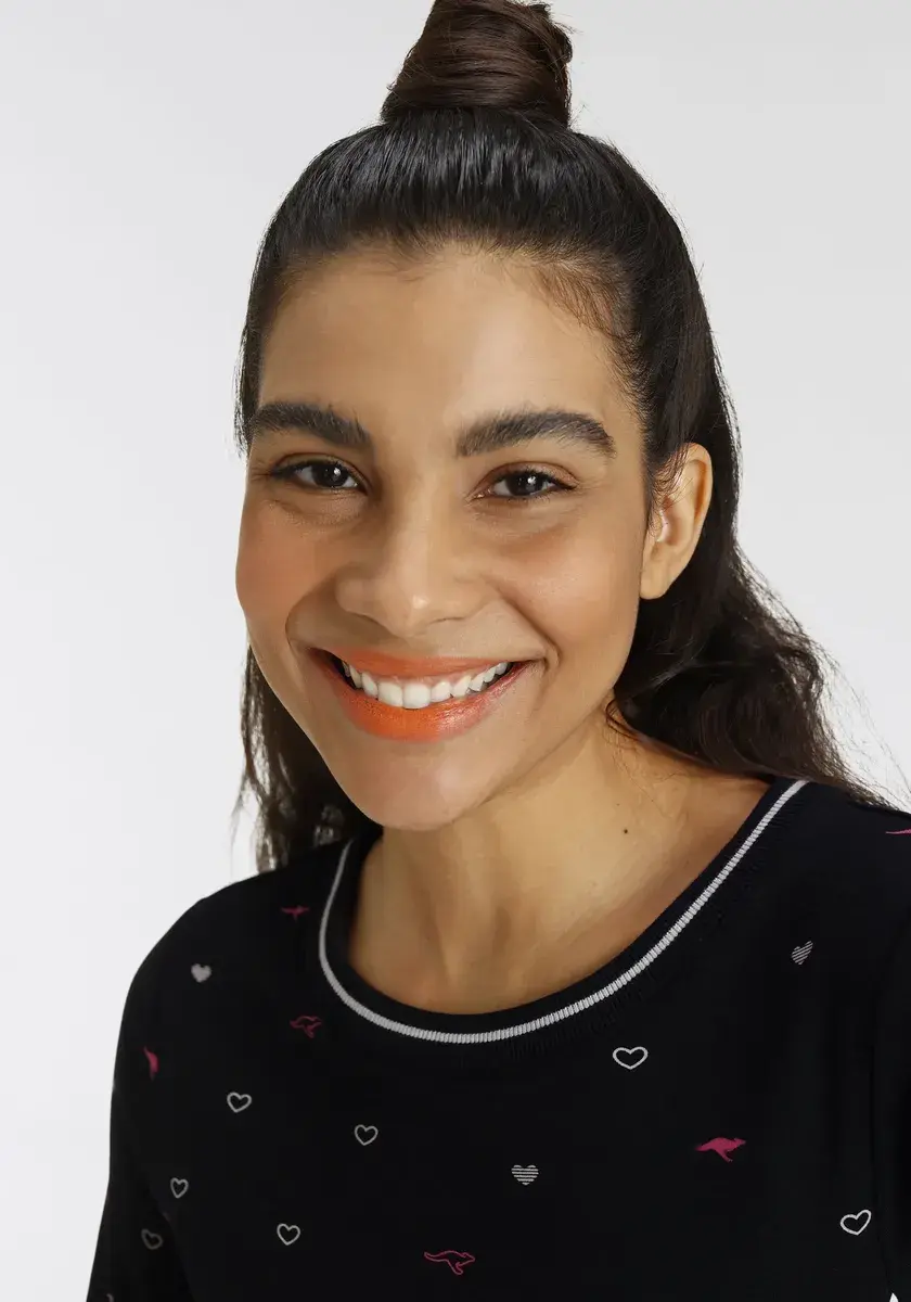 Классический женский свитер от KangaROOS. С прикрывающим ягодицы и облегающим фигуру кроем. Рукава длинные. Благодаря мягкой ткани интерлок топ удобен в ношении.