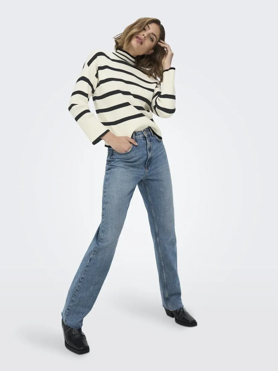 Only свитер с воротником-стойкой "ONLIBI L/S HIGNECK PULLOVER", цвет Whitecap Gray Stripes