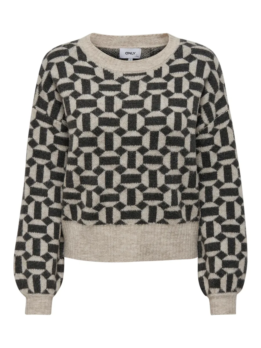 Only свитер с круглым вырезом "ONLGEO LIFE L/S PULLOVER KNT", черный