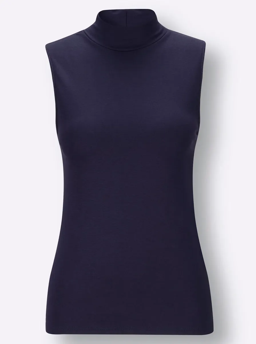 Блейзер без рукавов от Speidel с воротником стойкой. Без раздражающих боковых швов. Тонкое ребро. 48% хлопок, 48% модал (МикроМодал), 4% эластан.