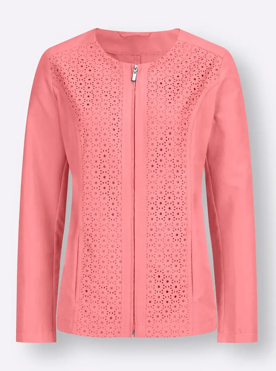 Блейзер из особенно простой в уходе микрофибры. Аккуратный рисунок отверстий. Привлекательный воротник-стойка, молния во всю длину и 2 боковых кармана. Формирование венских швов. 89% полиэстер, 11% полиамид. Машинная стирка.