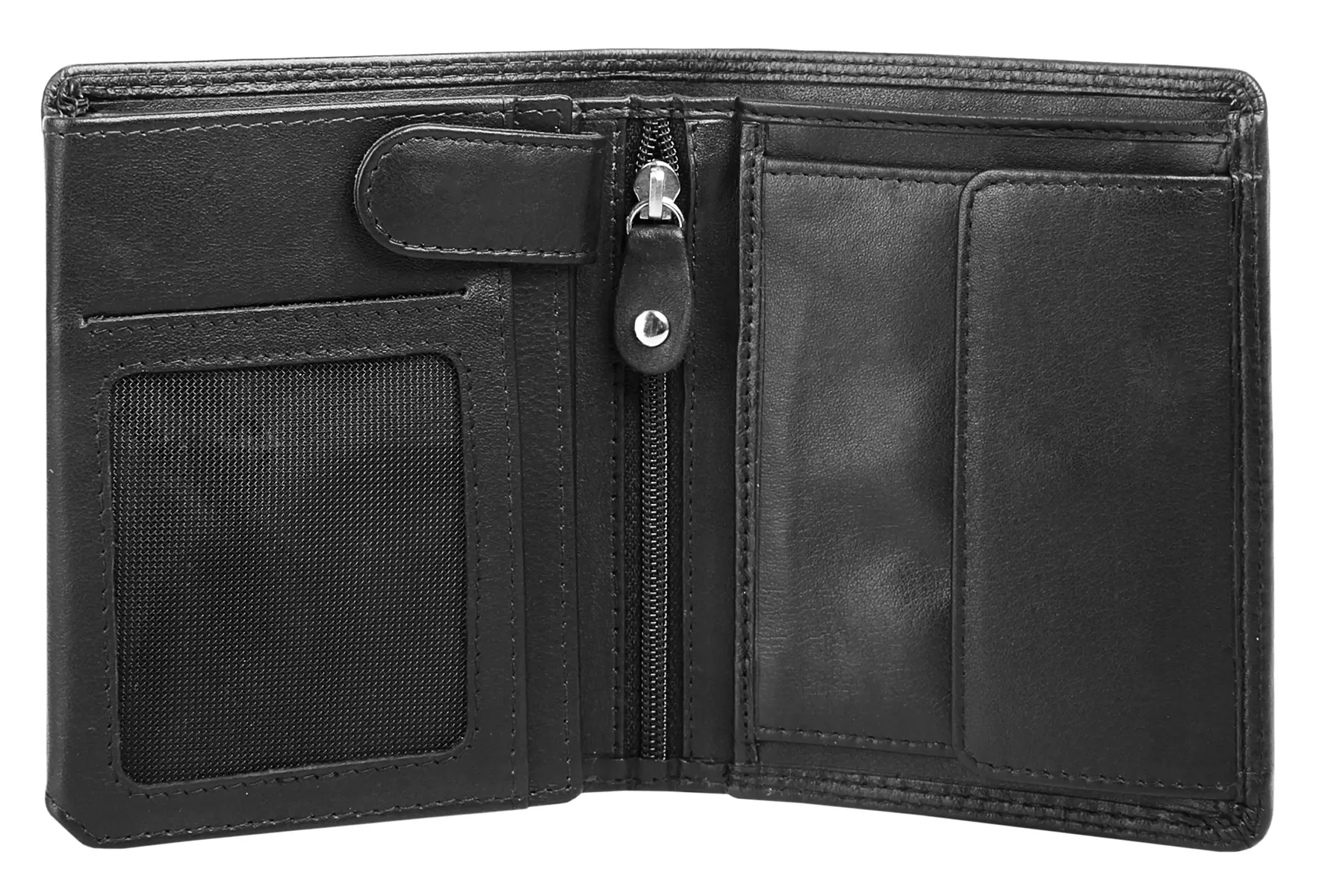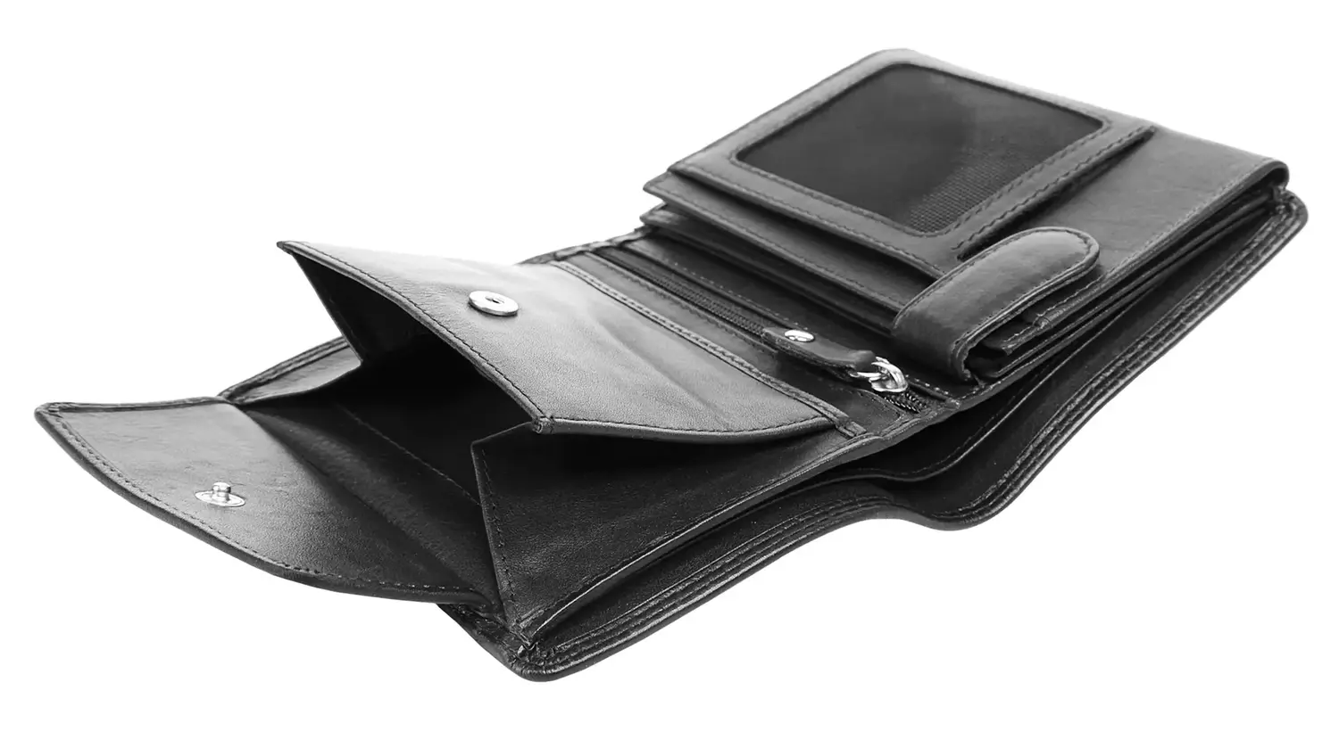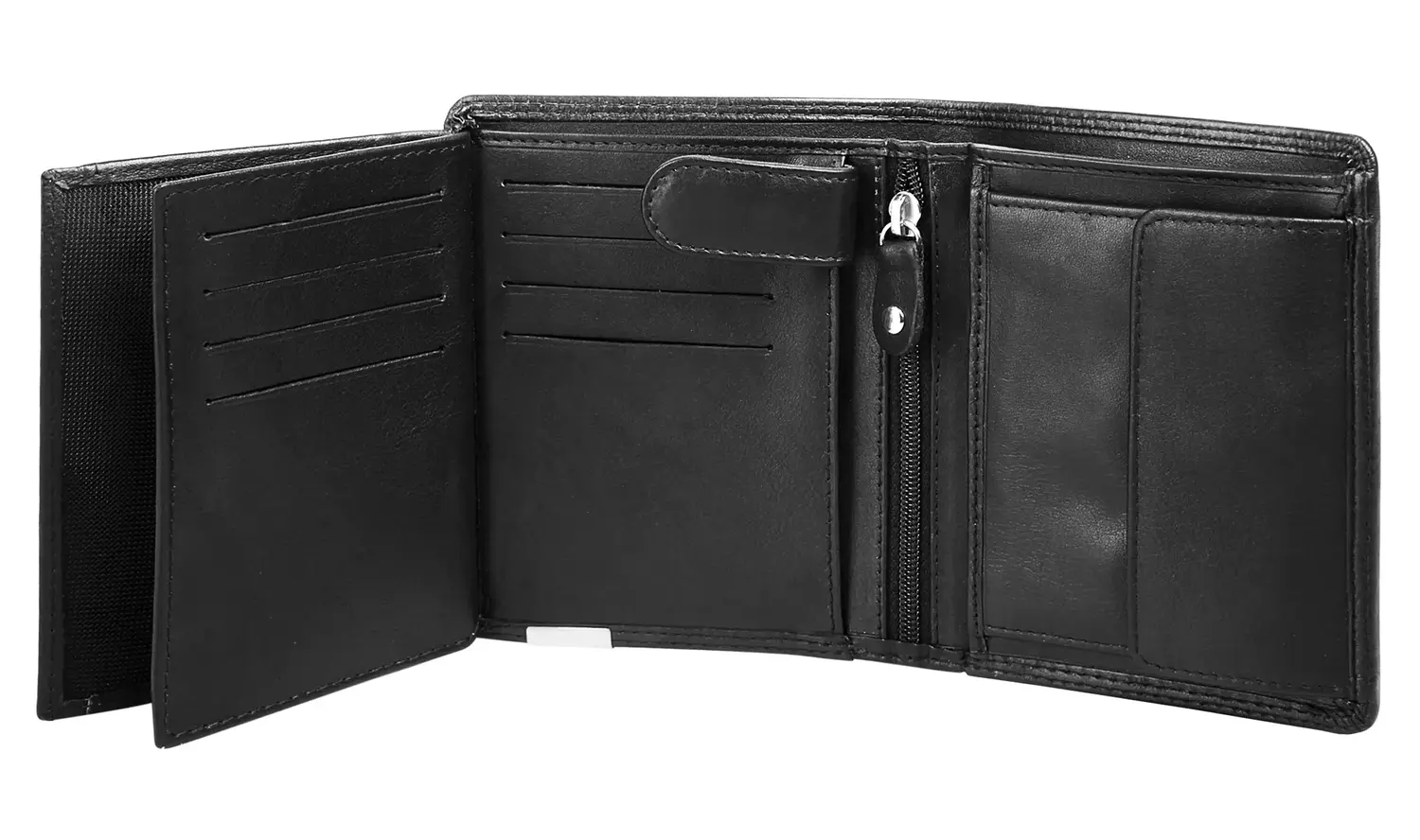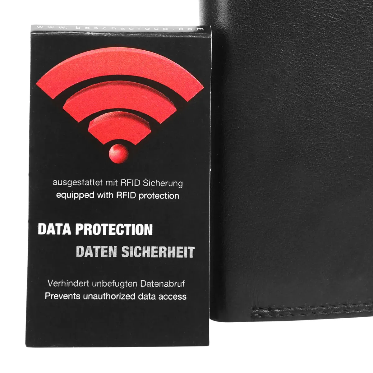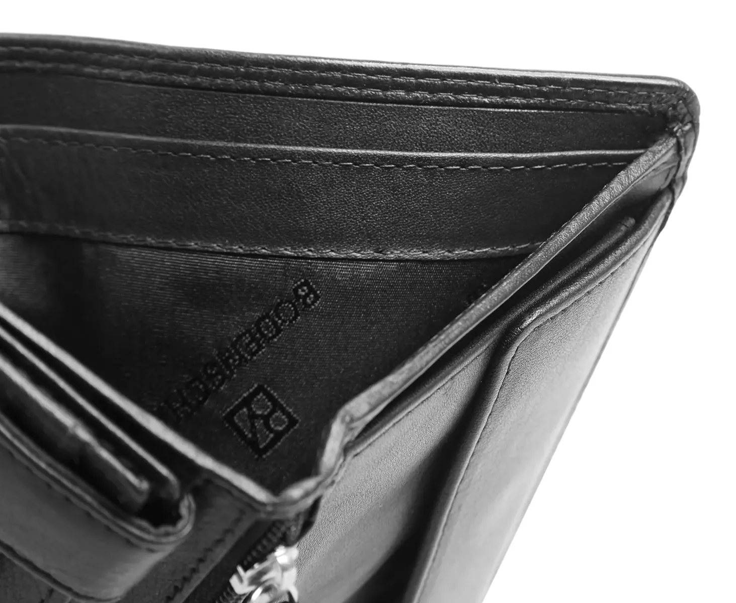 Классический кожаный кошелек от Bodenschatz. Неважно, наличные или банковская карта – все имеет свое место. Карманы расположены четко. Небольшое отделение на молнии предлагает дополнительное скрытое место для важных заметок. Особенность: благодаря встроенной защитной пленке RFID ваши банковские реквизиты защищены от несанкционированного доступа посредством сканирования! * 100% натуральная кожа* 1 отделение для купюр* 1 отделение для монет с застежкой-кнопкой* 8 отделений для карт* 3 видимых отделения* 2 прорезных кармана* 1 отделение на молнии* с RFID-защитой от несанкционированного использования данных при сканированииОсобенности: натуральная кожаДобавление к названию: натуральная кожаШирина Высота: 12,5 смВес: 110Высота: 9,5 см Глубина: 2,5 см Количество внутренних карманов: 2 Количество отделений для карточек: 8 Количество отделений для купюр: 2 Количество видимых отделений: 3 Внешний материал: 100% воловья кожа Размер: один размер Основная застежка : Без застежки Цвет внутренней части: черный Материал внутренней части: ткань Внутренний вид: соответствующий цвет Вес: 110 г Монетное отделение: есть (кнопка) Вид поверхности: обработанная, полуглянцевая Объем: 0,1 Формат: портретный формат