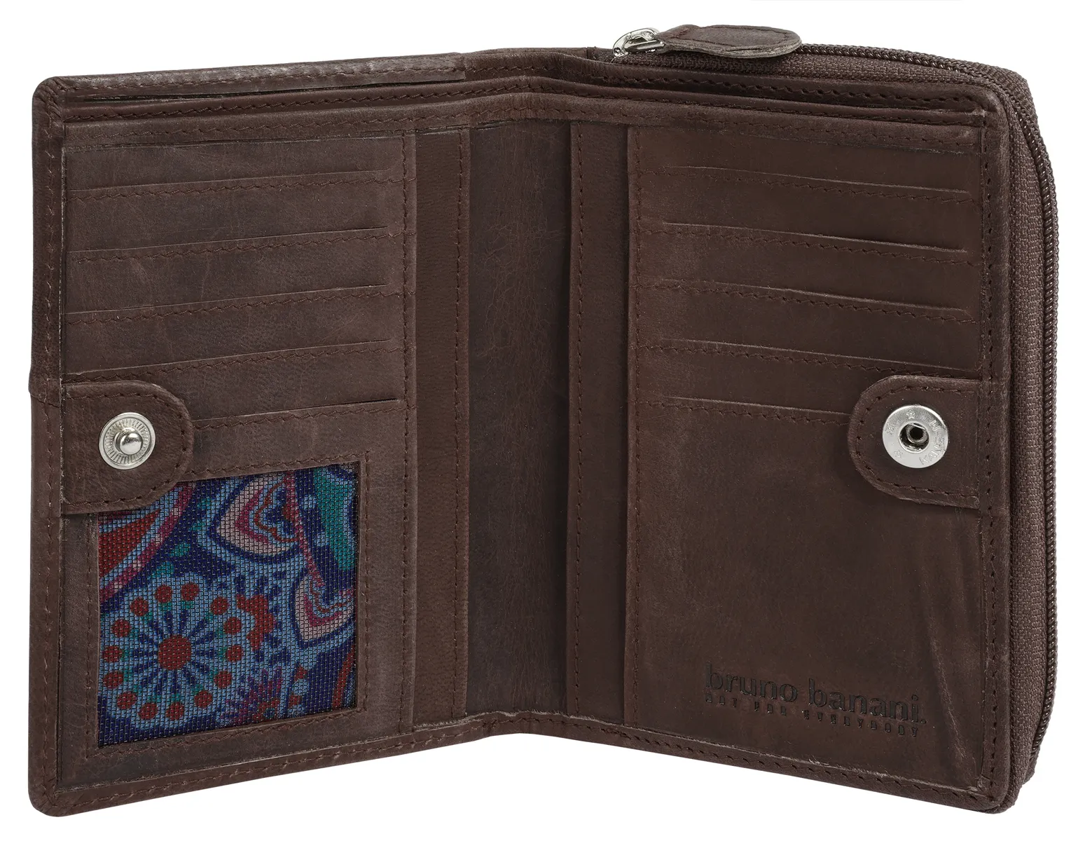 Классический кожаный кошелек от Bruno Banani! Компактный кошелек имеет два отдельных отделения: одно со всевозможными отделениями для банковских карт, удостоверений личности, наличных и т. д., другое содержит отделение для монет и закрывается молнией по всему периметру. Высококачественная кожа придает ему деревенский вид.* 100% коровья кожа* Застежка на кнопки* 2 отдельных отделения* 1 отделение для монет на молнии по всему периметру* 2 отделения для купюр* 9 отделений для карт* 4 накладных кармана* 1 видимый карман* тонкий тиснение логотипа спередиОсобенности: натуральная кожаДополнение к названию: натуральная кожаШирина: 9 смВес: 100Высота: 13 смГлубина: 2 смКоличество внутренних карманов: 4Количество отделений для карточек: 9Количество отделений для купюр: 2Количество видимых карманов: 1Внешний материал: 100% воловья кожаРазмер: один размерОсновная застежка: застежка-кнопкаВнутренний материал: кожаВнутренний вид: цвет в тонВес: 0,1 кгОтделение для монет: есть (молния)Вид поверхности: однотонный - матовыйОбъем: 0,1Формат: портретный формат