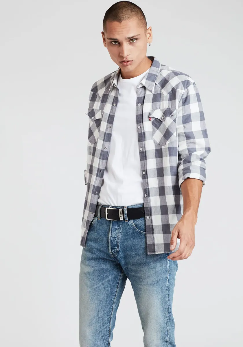 Классический кожаный ремень Levi's Plus. Его можно постепенно регулировать с помощью одной металлической пряжки. Материал выглядит элегантно и долговечен.