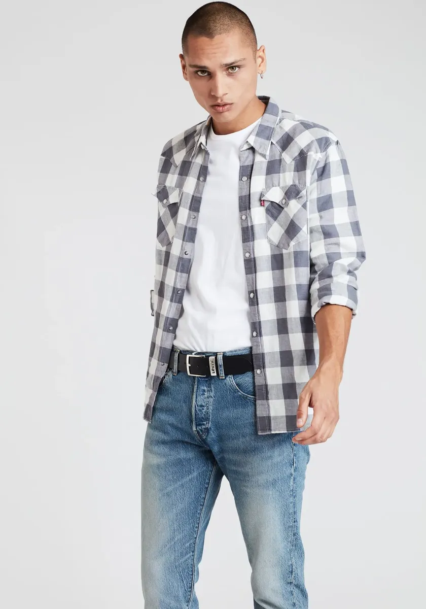 Классический кожаный ремень от Levi's. Его можно постепенно регулировать с помощью одной металлической пряжки. Материал мягкий и выглядит стильно. Благодаря ширине 4 см она подойдет не только для шикарного гардероба, но и для повседневных образов.